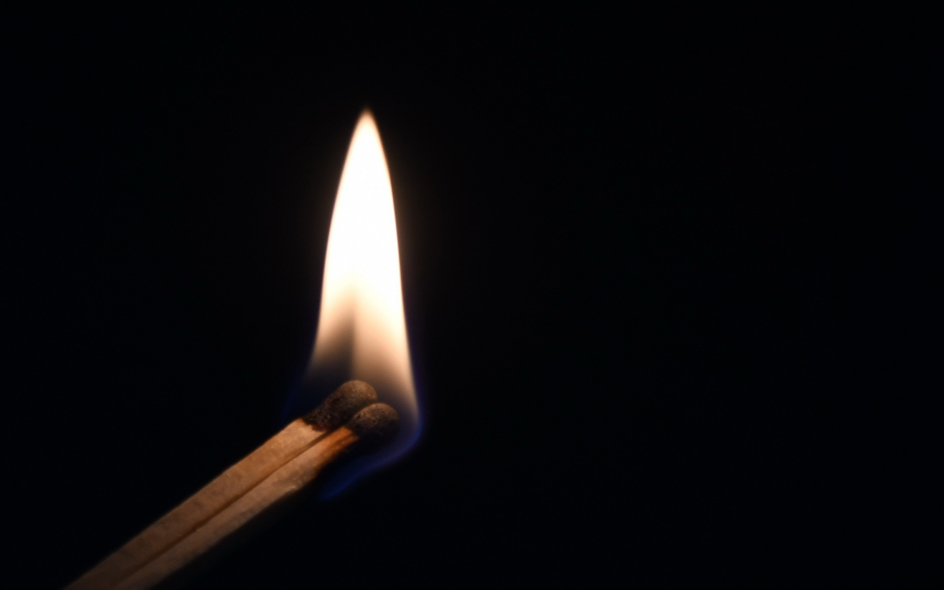 Description: A matchstick with a match lite up in the dark with a match in the middle of the match.