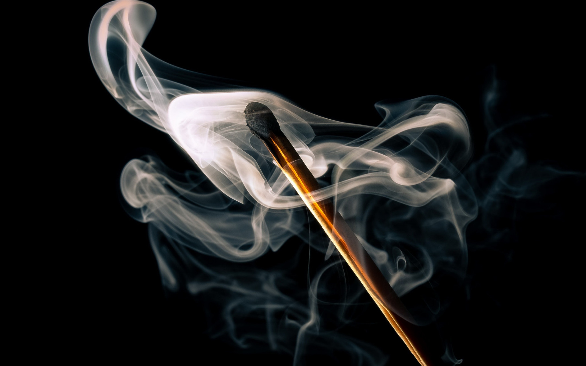 Description: A matchstick with smoke coming out of it on a black background with a black background and a black background.