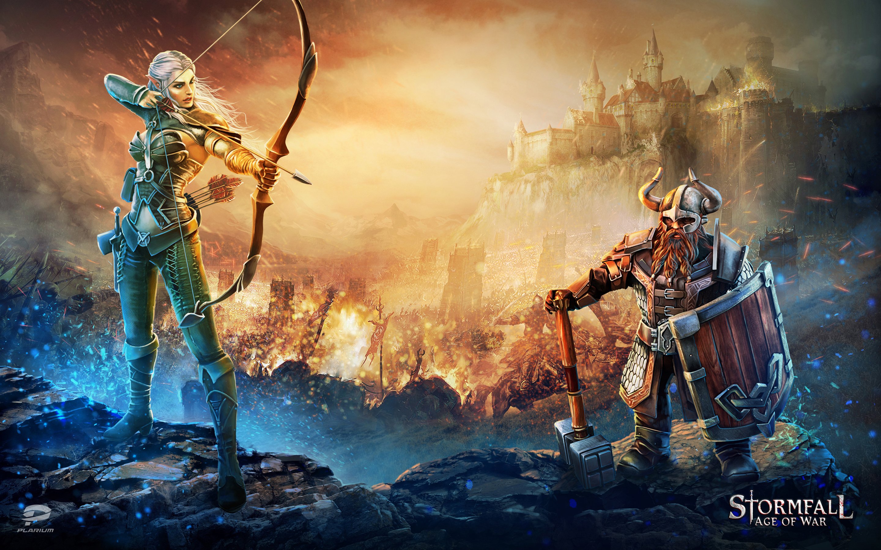 Description: Two people dressed in medieval costumes standing in front of a castle with a bow and arrow in their hands.