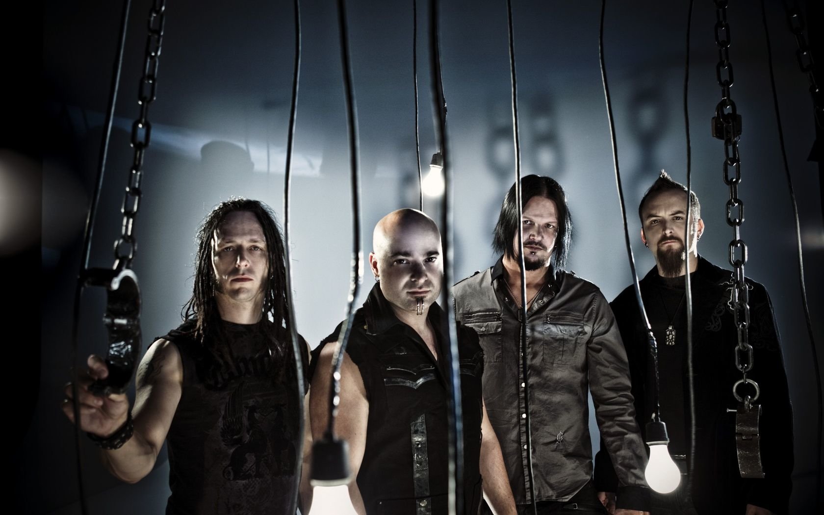 Description: A group of men standing next to each other holding onto strings of chains and a light bulb hanging from them.