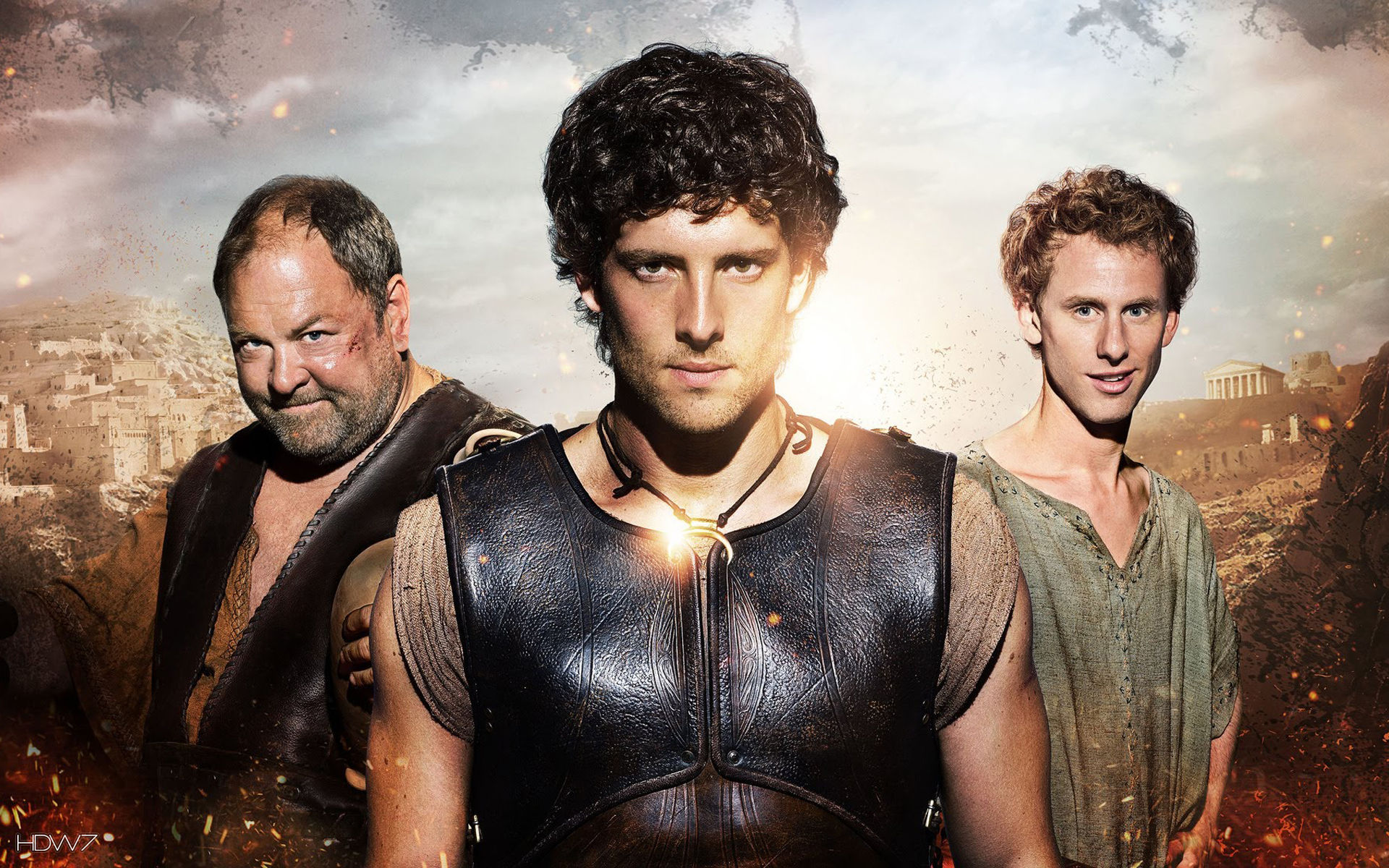 Description: A group of men standing next to each other in front of a cityscape with a sky background.