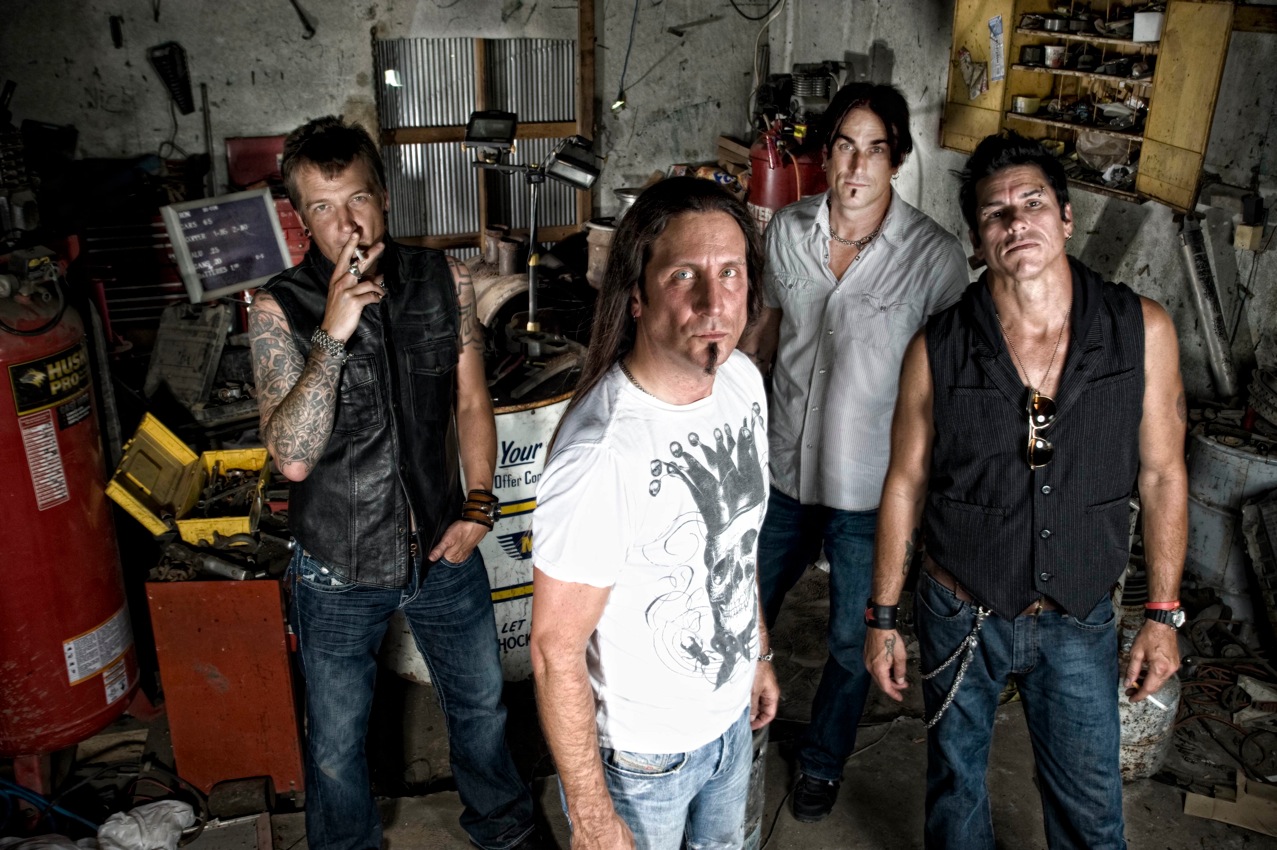 Description: A group of men standing next to each other in a room with a fire hydrant and a fire hydrant.