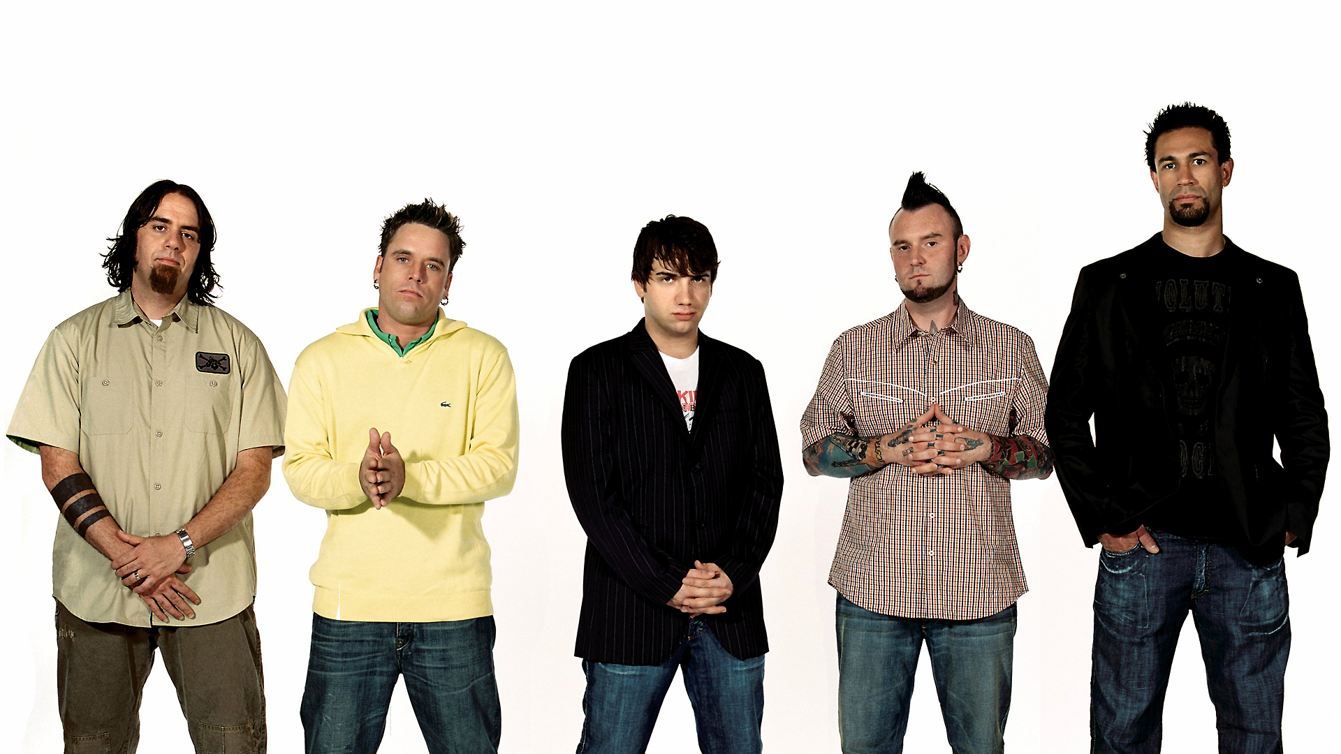 Description: A group of men standing next to each other in front of a white background with a white background behind them.