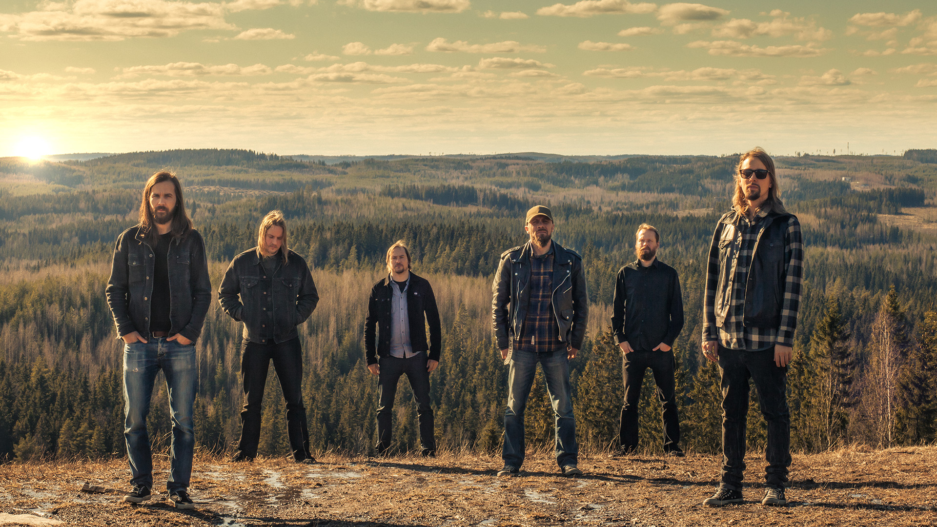 Description: A group of men standing on top of a hill next to a forest filled with trees and grass covered hillside.