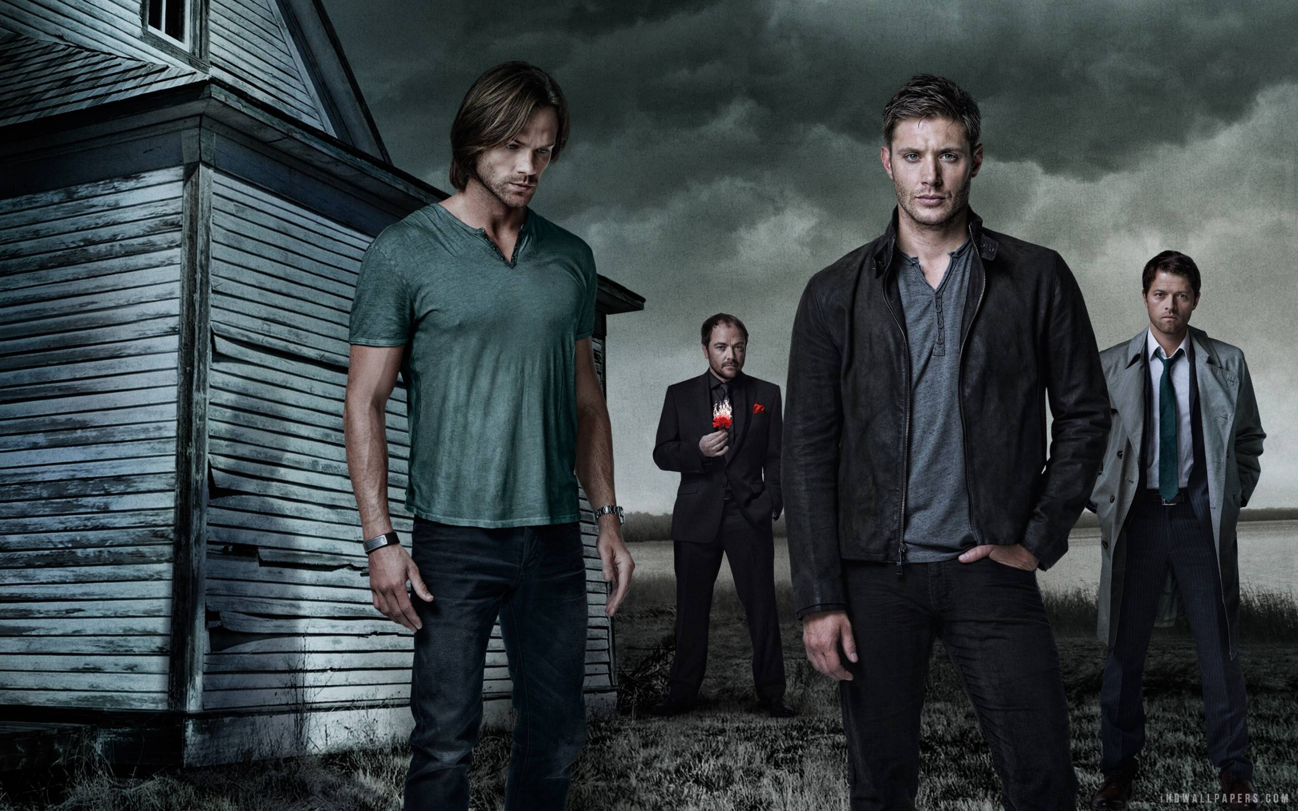 Description: A group of men standing in front of a house under a cloudy sky with a house in the background.