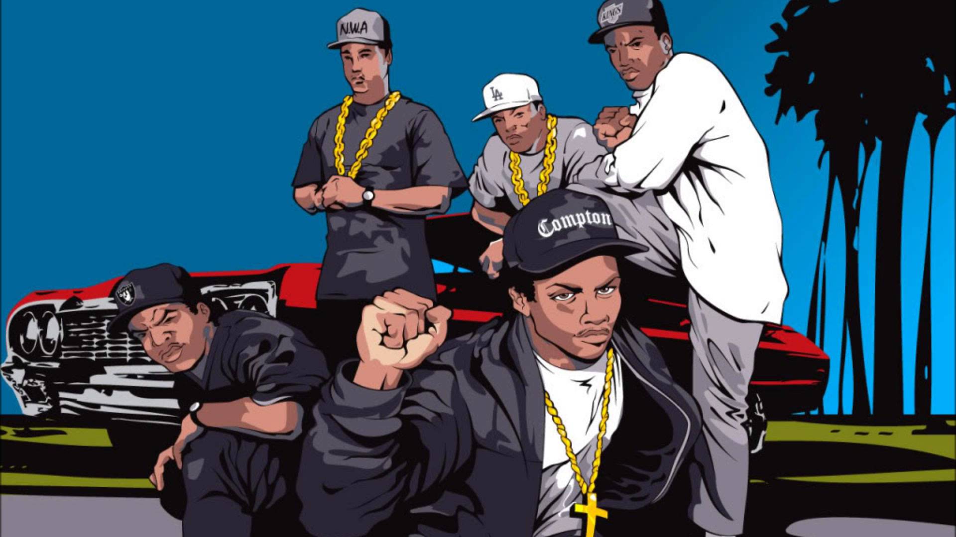 Description: A group of men standing next to each other near a red car with a yellow chain on it's neck.