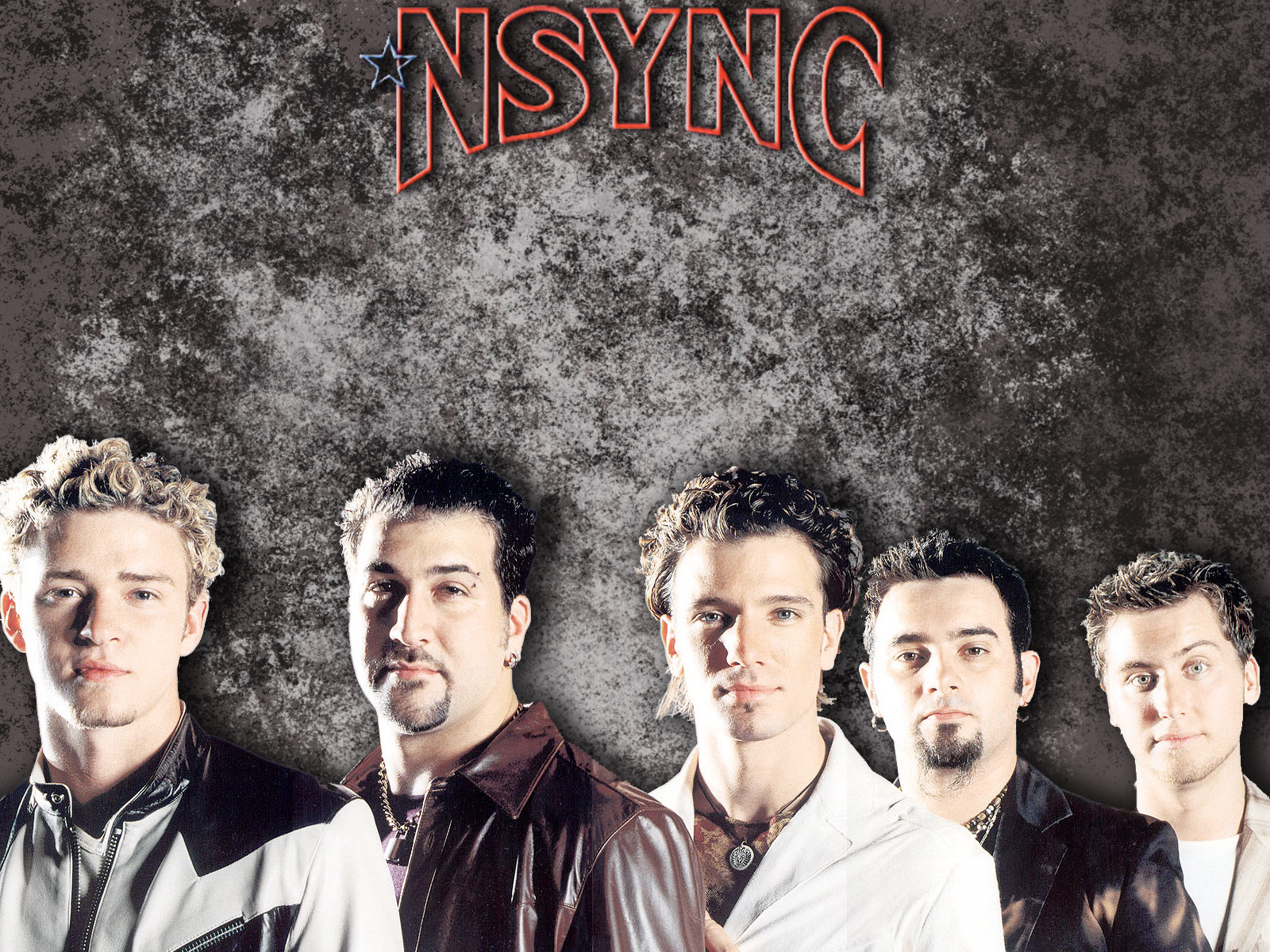 Description: A group of men standing next to each other in front of a wall with the words insync on it.