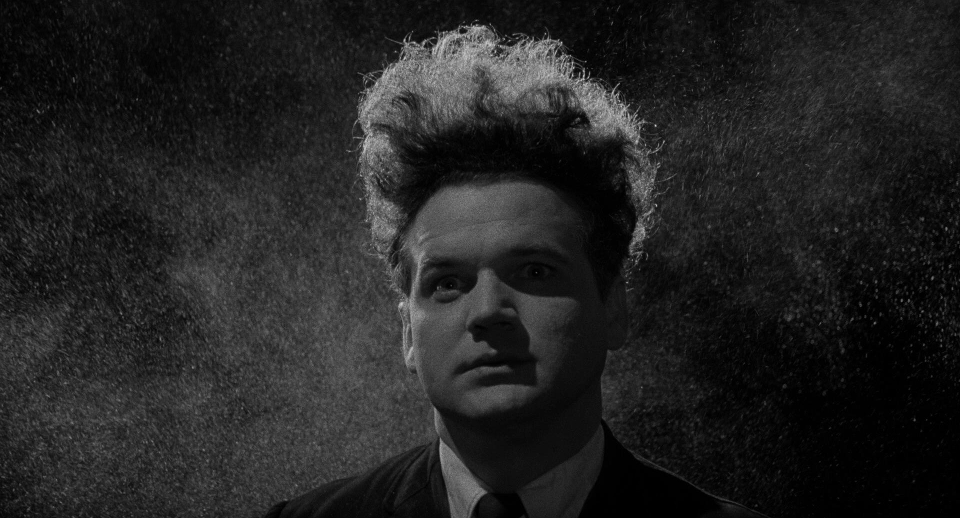 Description: A man with a messy haircut and a tie on posing for a picture in a black and white photo.