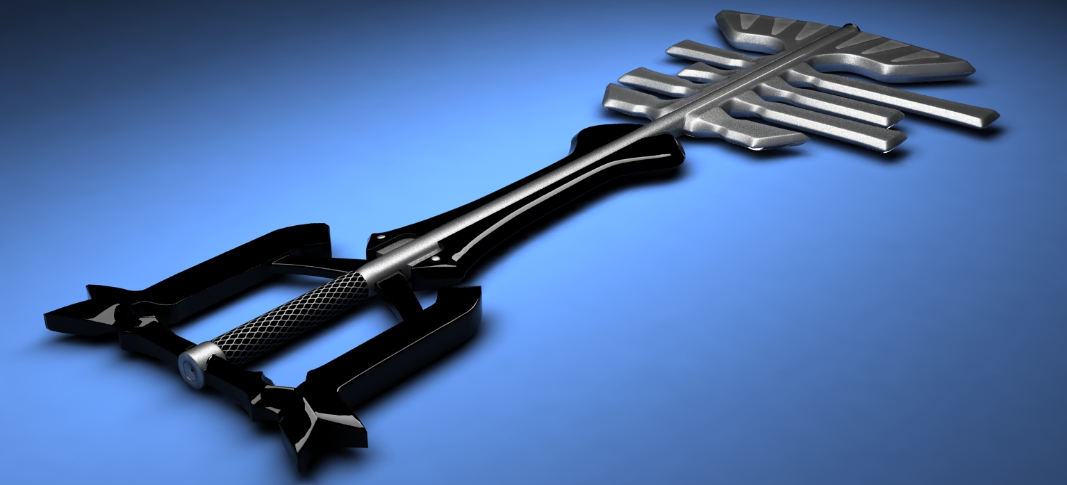 Description: A metal key with a black handle on a blue background with a black background and a black key on the key.
