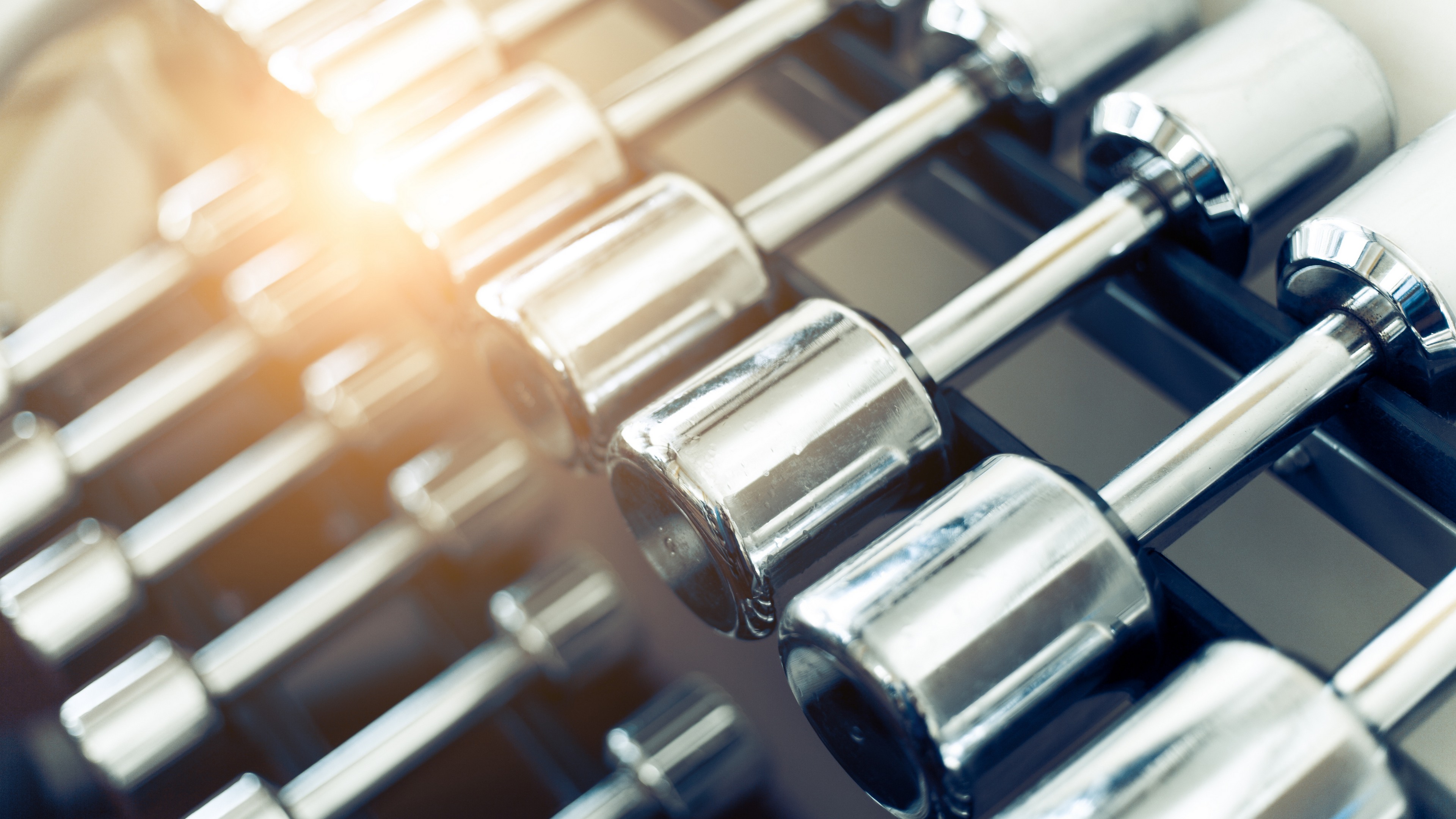 Description: A close up of a bunch of metal objects in a room with sunlight coming through the window and a clock in the background.