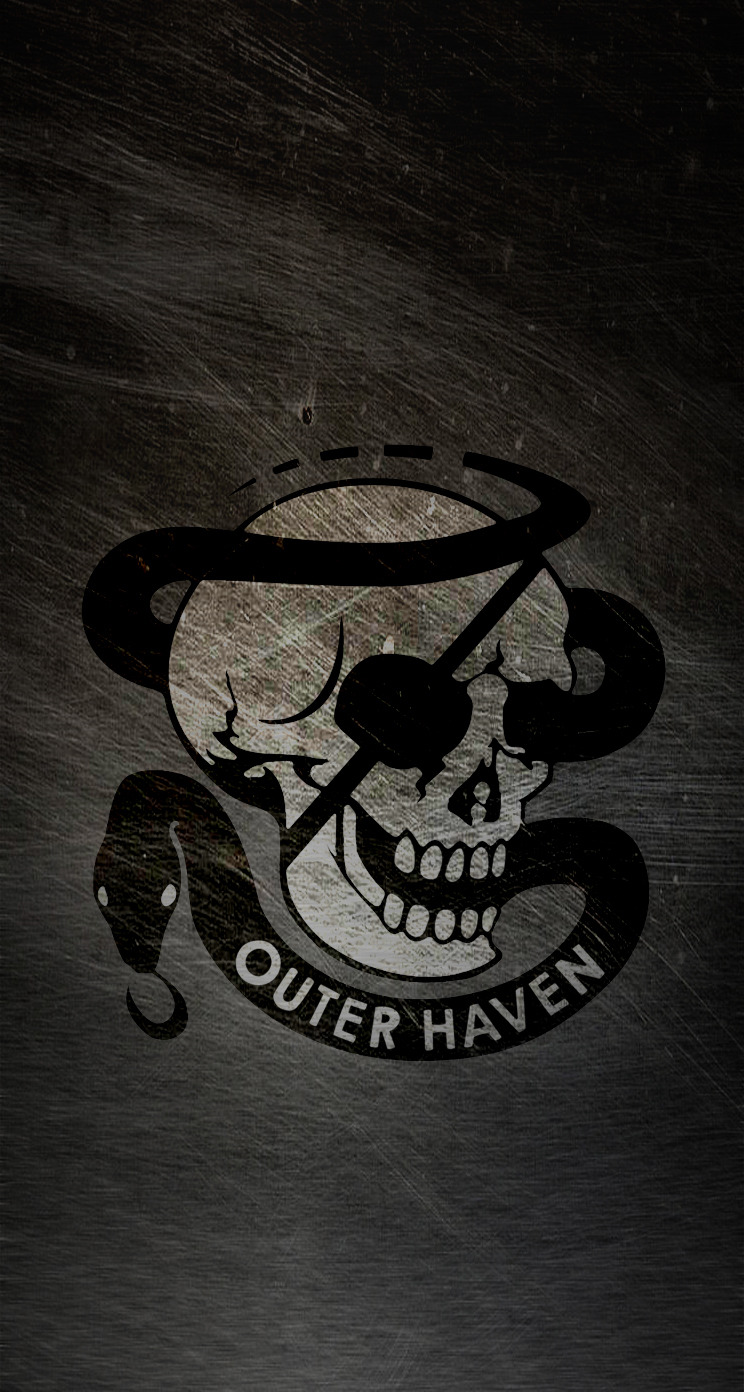 Description: A metal plate with a skull and a wrench on it with the words outer haven written on it.