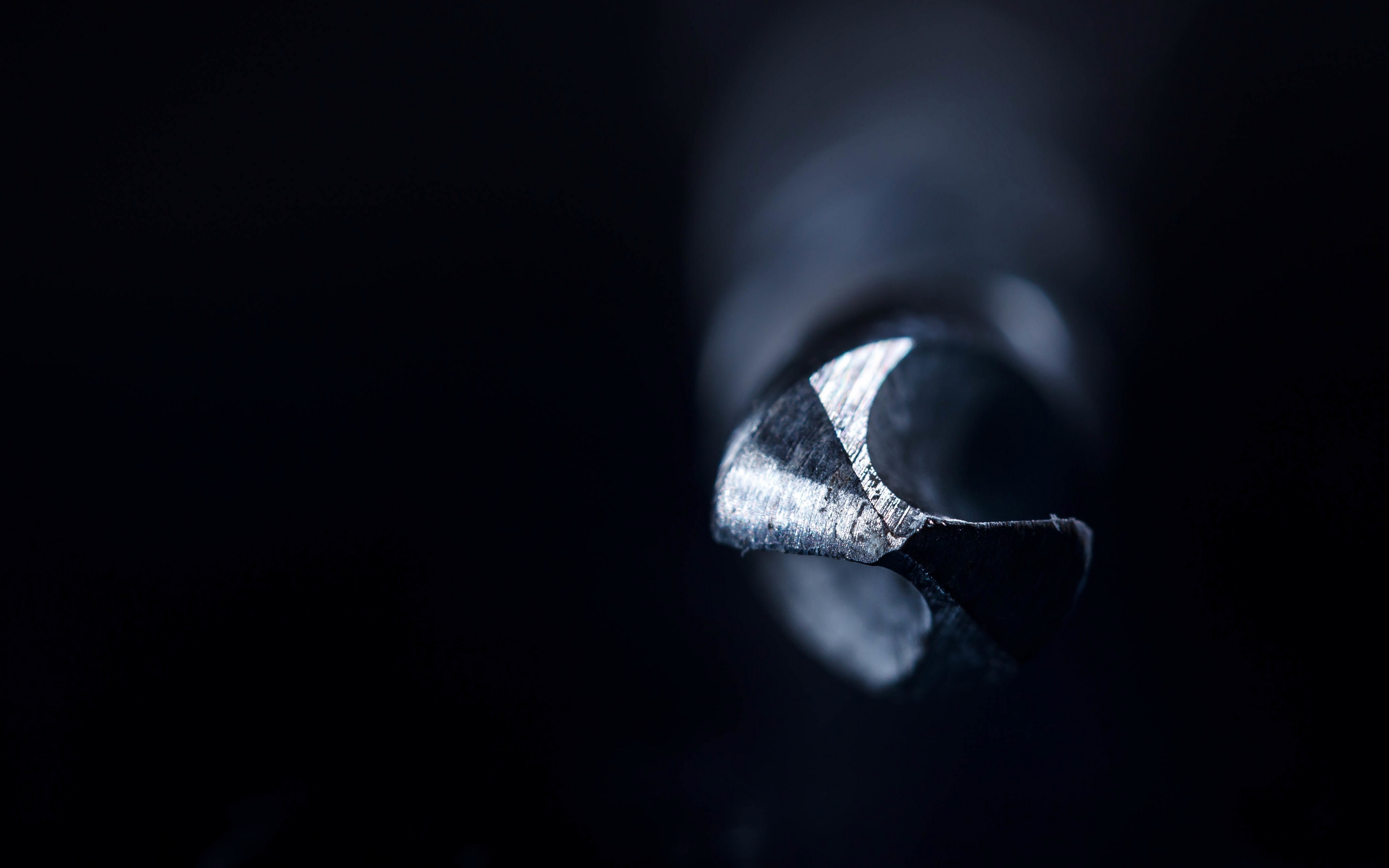 Description: A metal object with a black background and a blurry background with a black background and a silver object with a black background.
