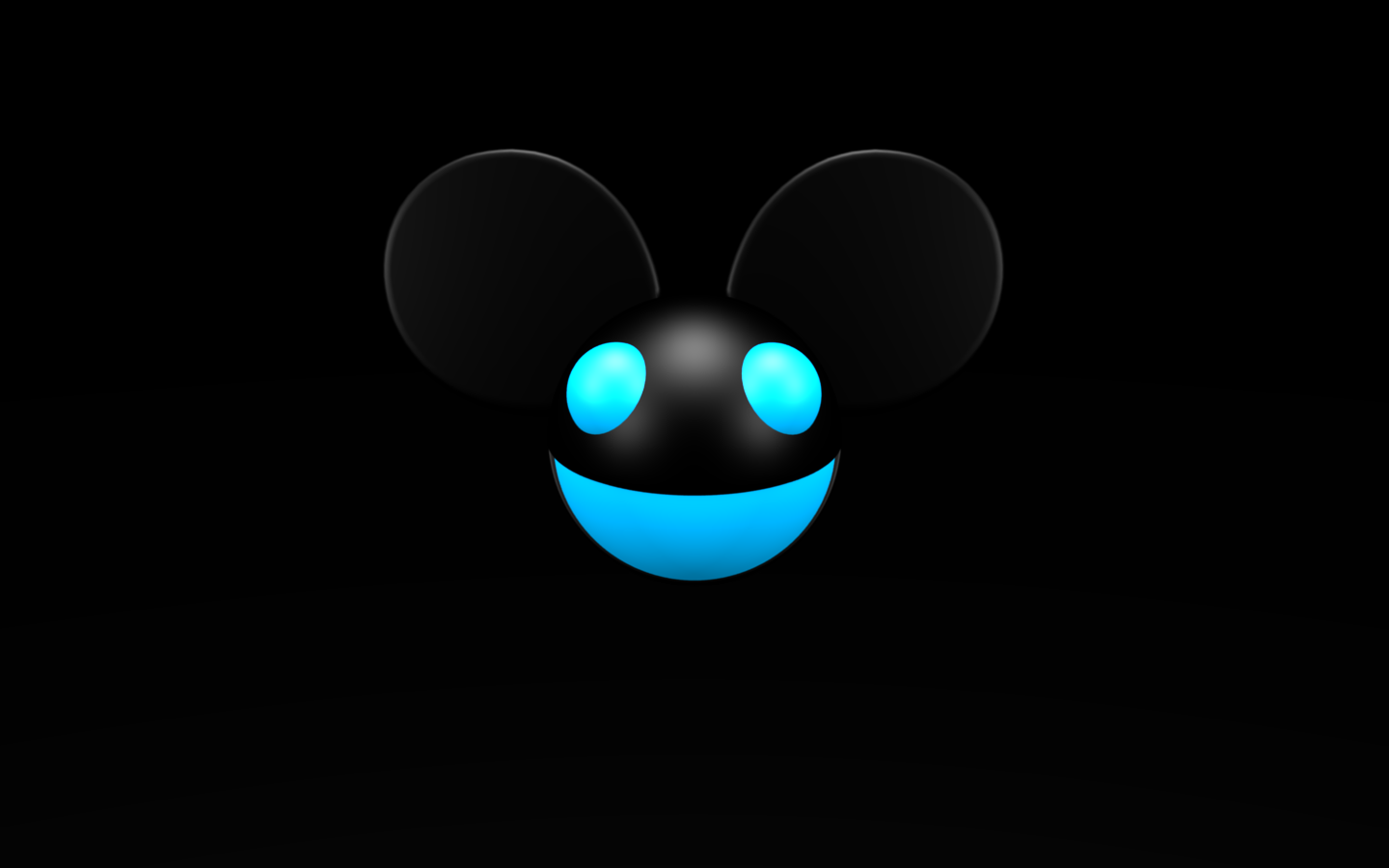 Description: A mickey mouse face with blue eyes and a black background with a black background and a blue light in the middle.