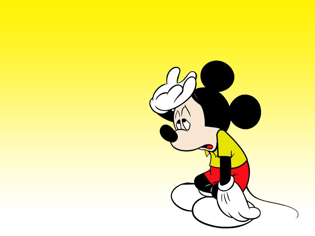 Description: A cartoon mickey mouse with a yellow background and a black and white mouse on it's head and a yellow shirt.