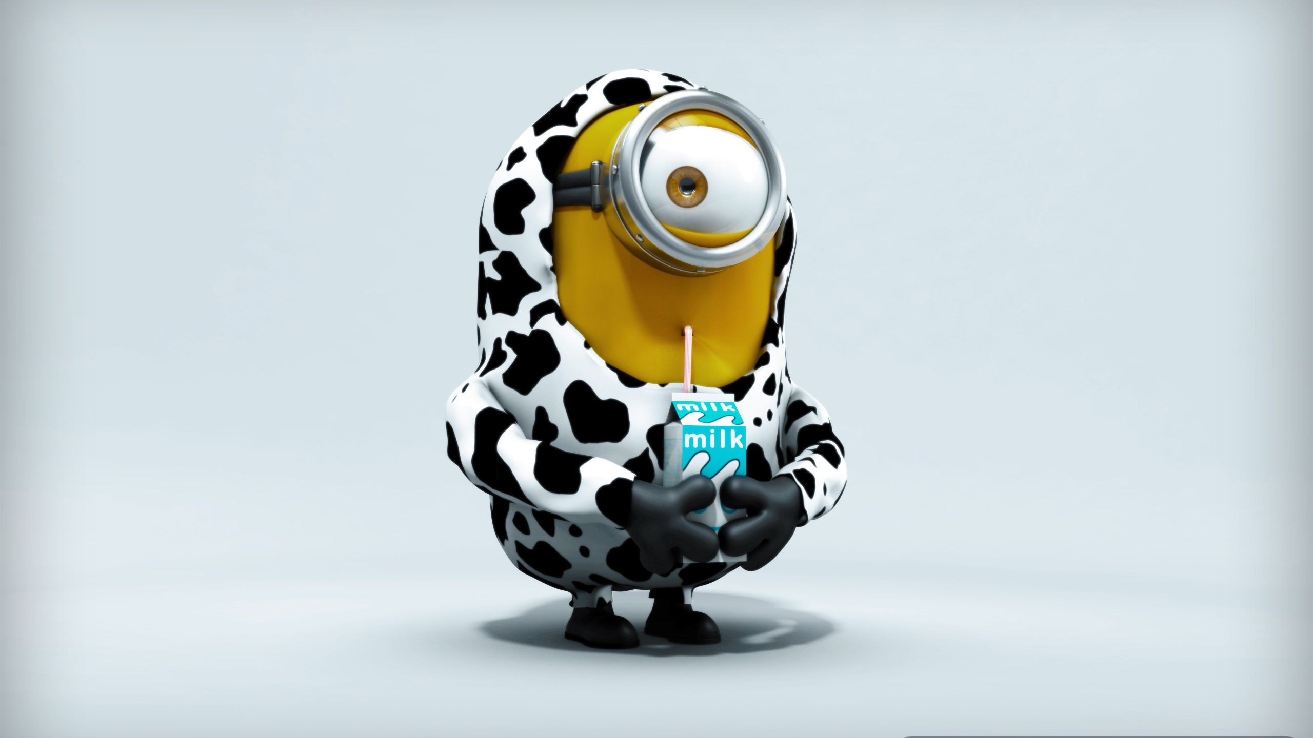 Description: A minion with a birthday candle in it's hand and a cake in the shape of a minion.
