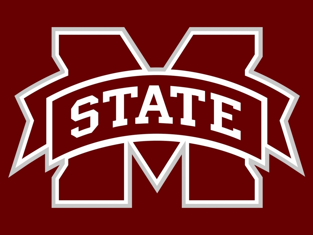 Description: The mississippi state university logo on a maroon background with a ribbon around it's neck and the word mississippi.