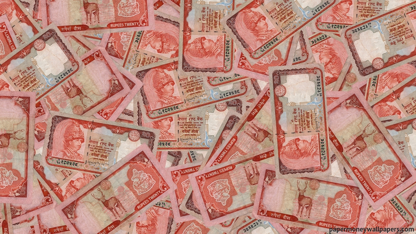 Description: A lot of money that is laying on top of each other on a tablecloth with a picture of a man on it.