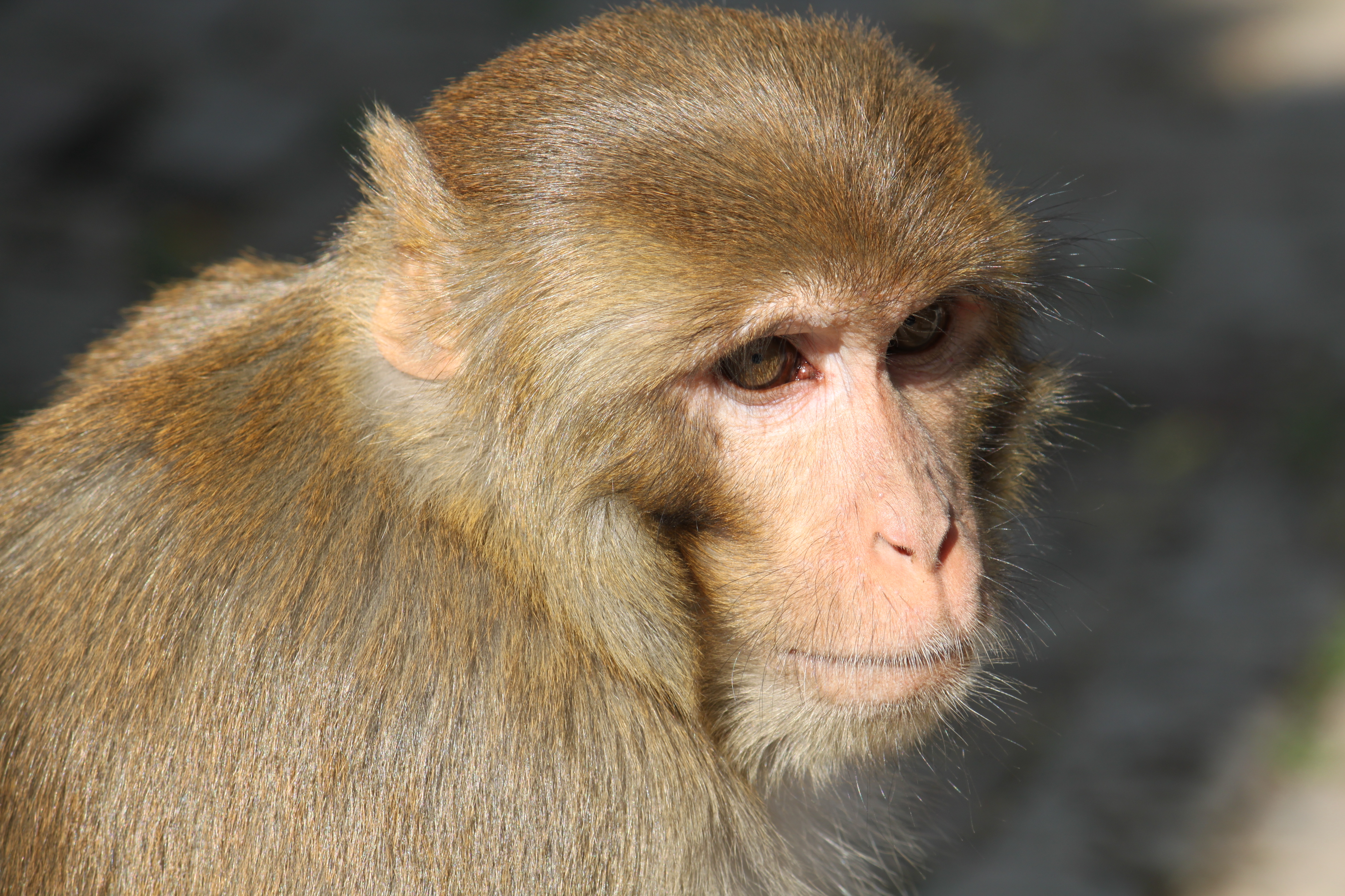 Description: A monkey with a long nose and a blurry background is shown in this image of a monkey with a long nose and a blurry background is shown in the foreground.
