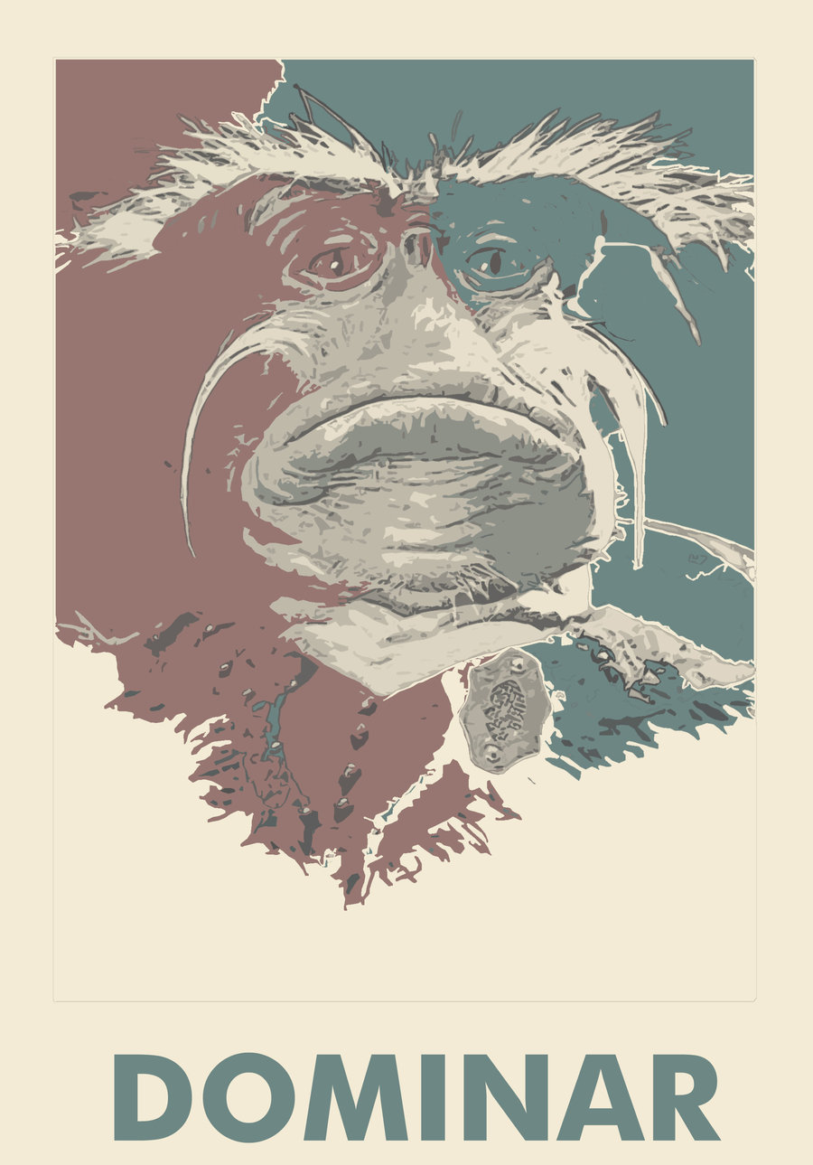 Description: A poster with a monkey on it that says dominar on it's face and a caption below.