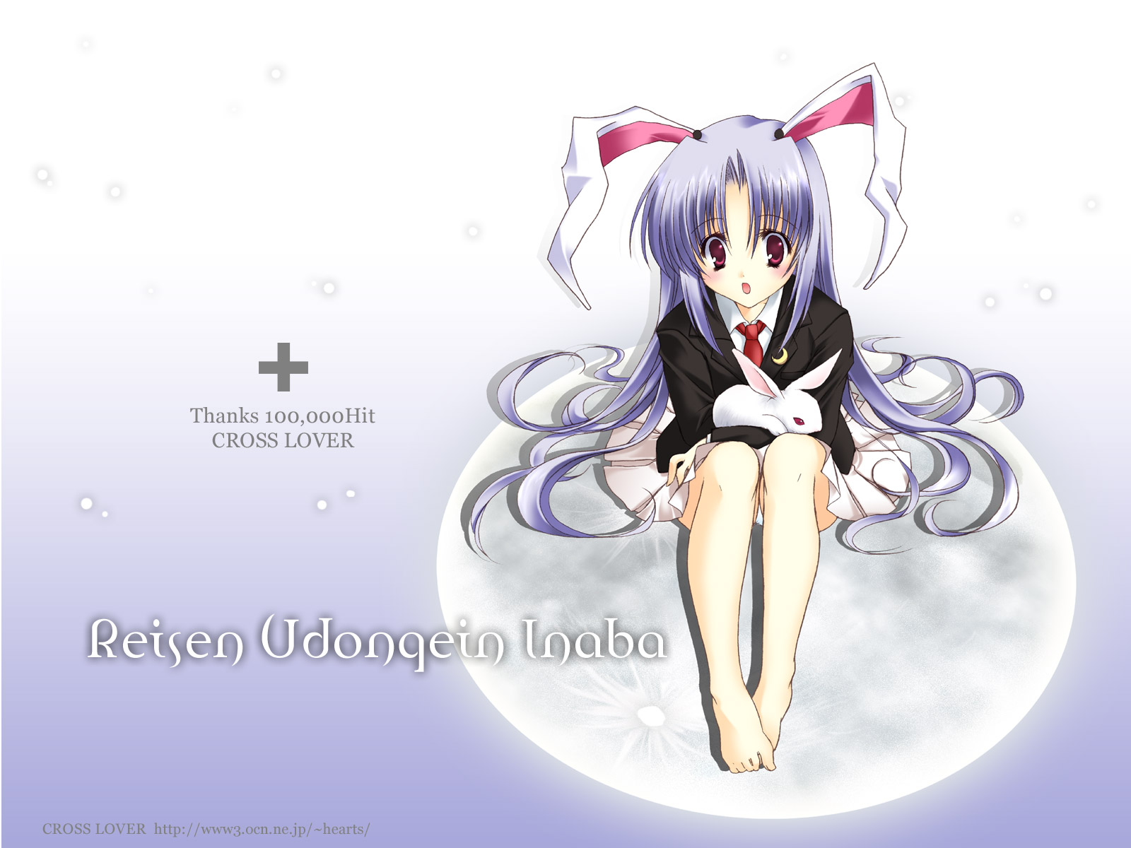Description: A anime girl sitting on a moon with a cat on her lap and a cross in her hand.