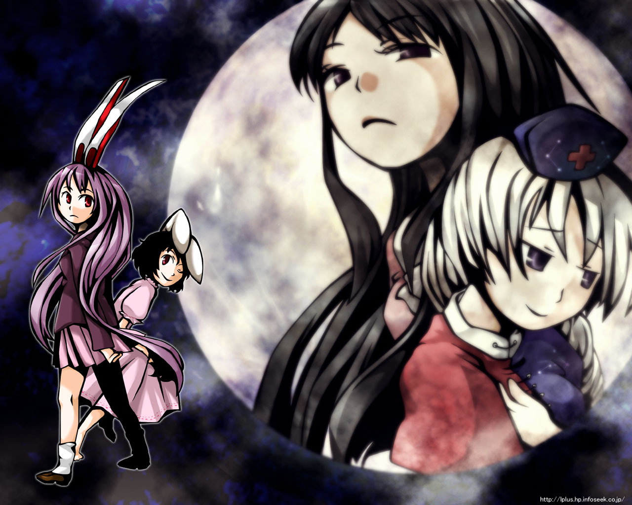 Description: Two anime characters are standing in front of a full moon and a full moon behind them are two girls.
