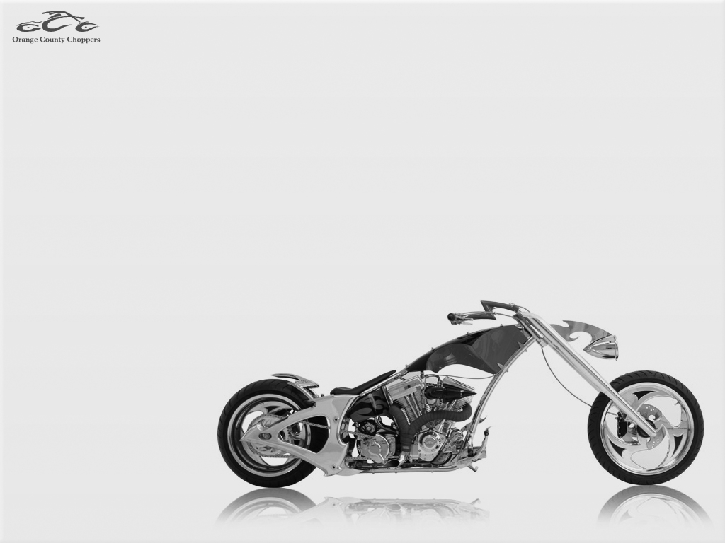 Description: A motorcycle is shown in a black and white photo with a reflection on the floor and a white background.