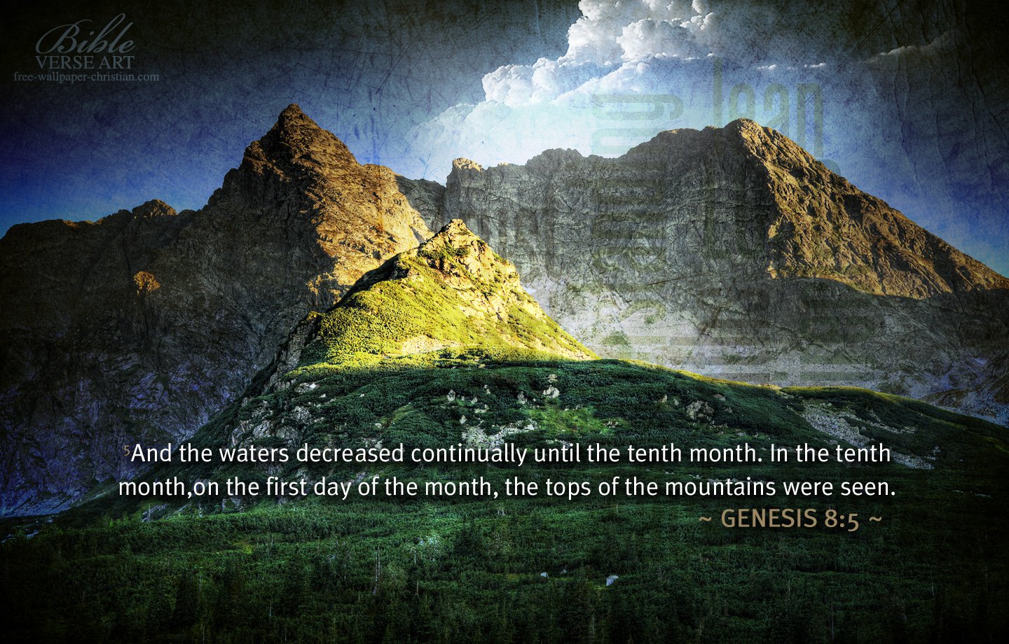 Description: A mountain with a bible verse on it and a sky background with clouds above it and a quote from the bible.