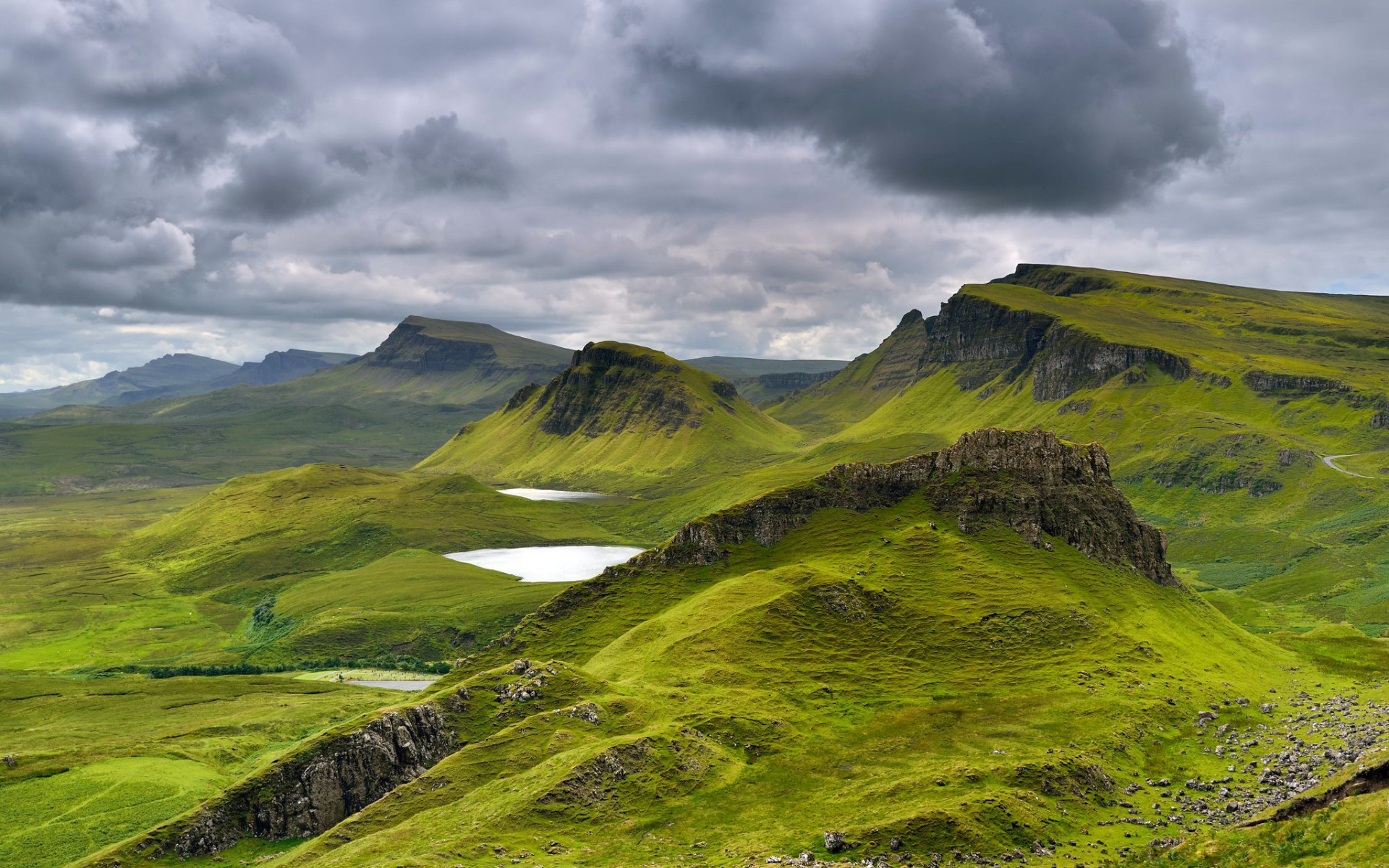 Description: A mountain range with a lake in the middle of it and a cloudy sky above it.