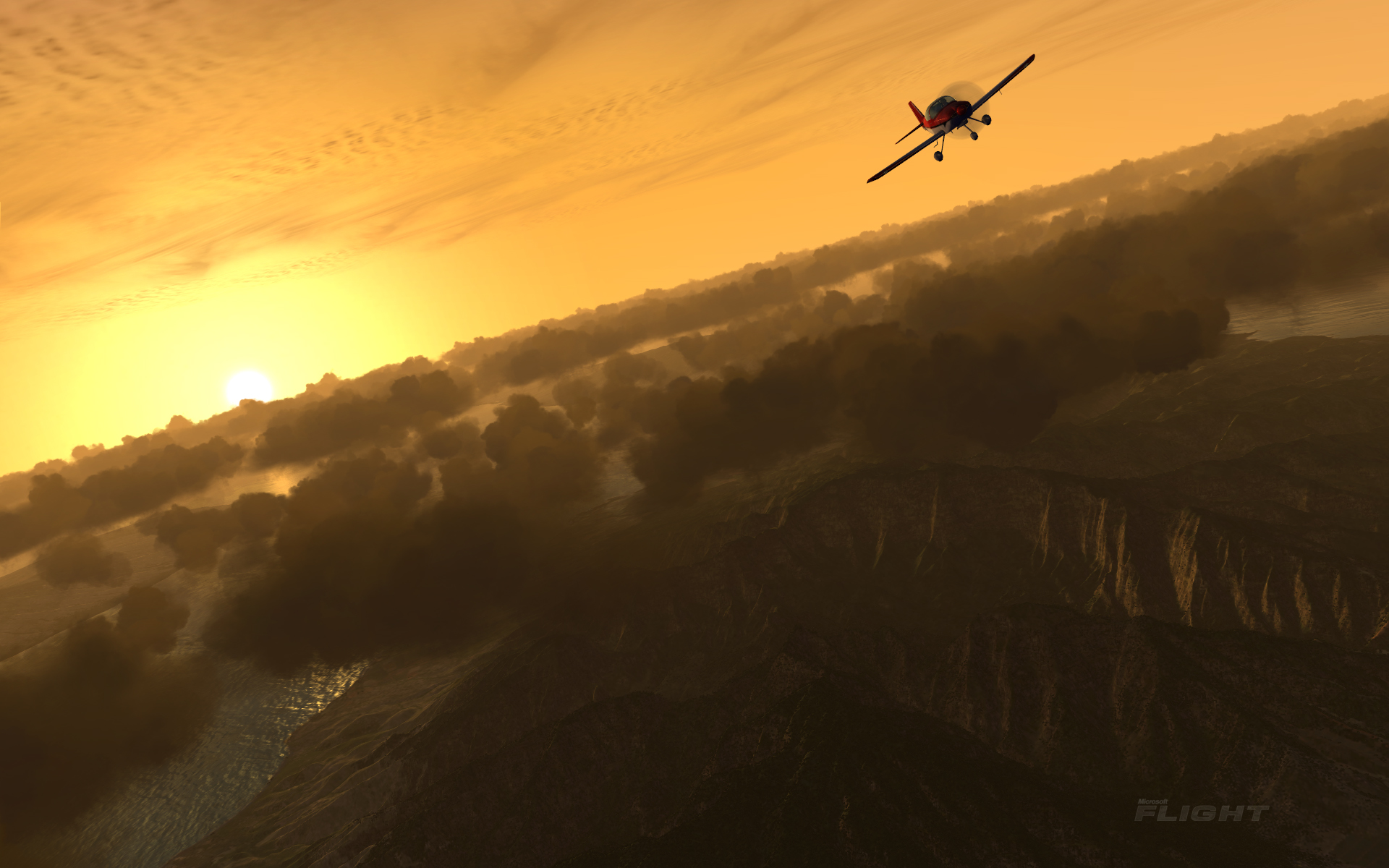 Mountain plane sunset clouds volumetric - free wallpaper for desktop | 5desktop.com