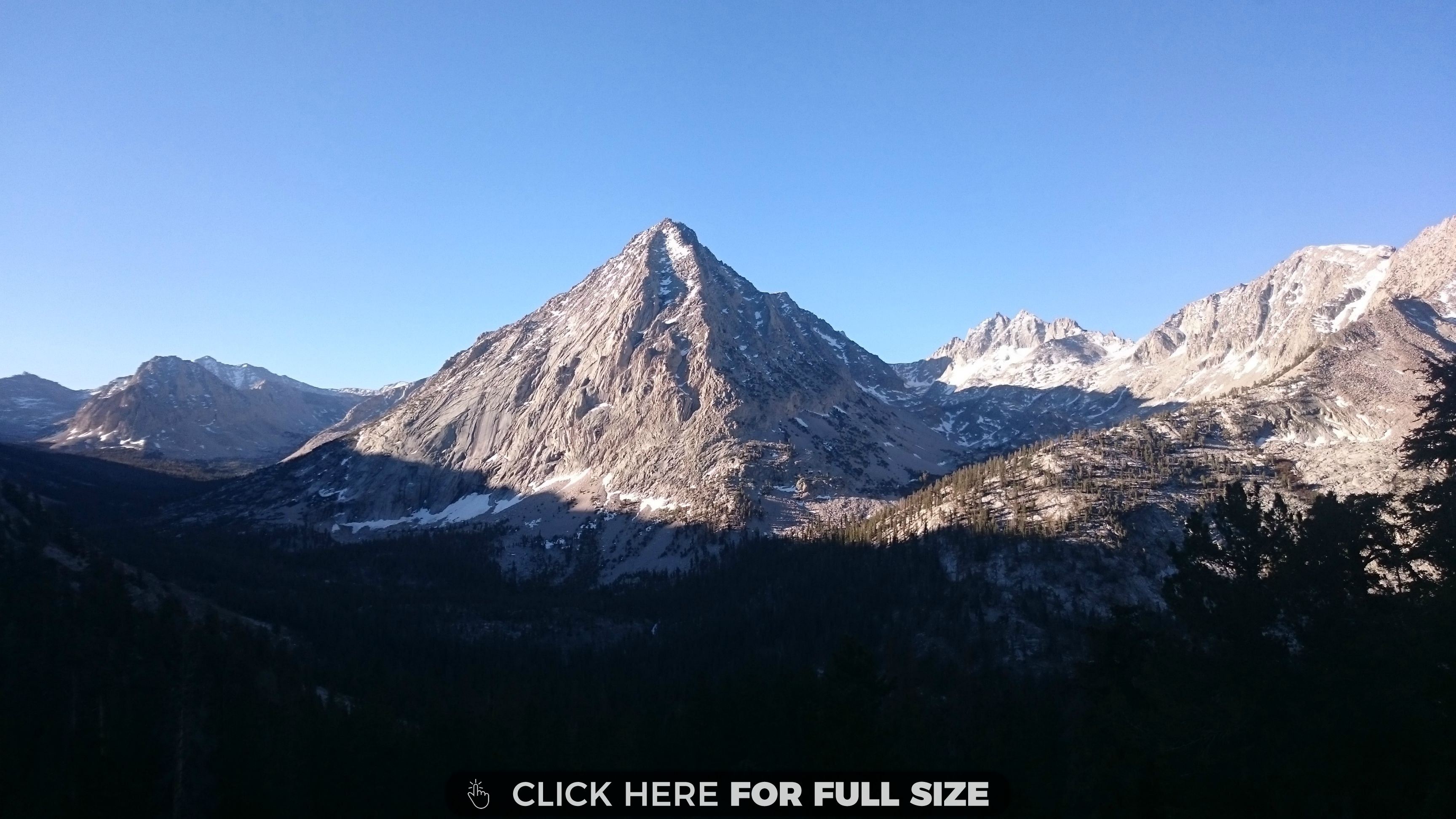 Description: A mountain range with a few snow covered mountains in the distance with a blue sky above it and a few clouds in the sky.