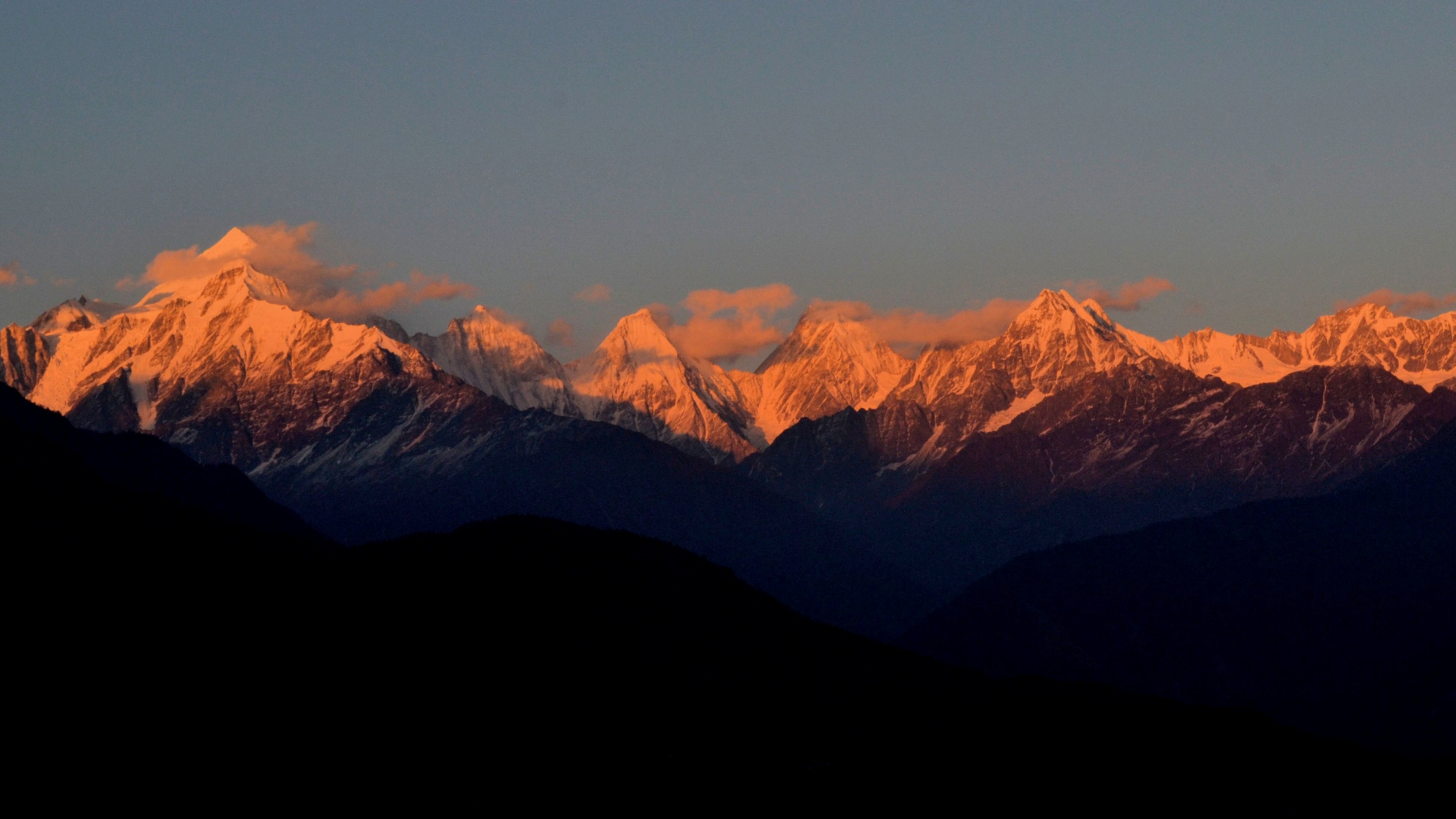Description: A view of a mountain range with a sunset in the background and clouds in the sky above it.