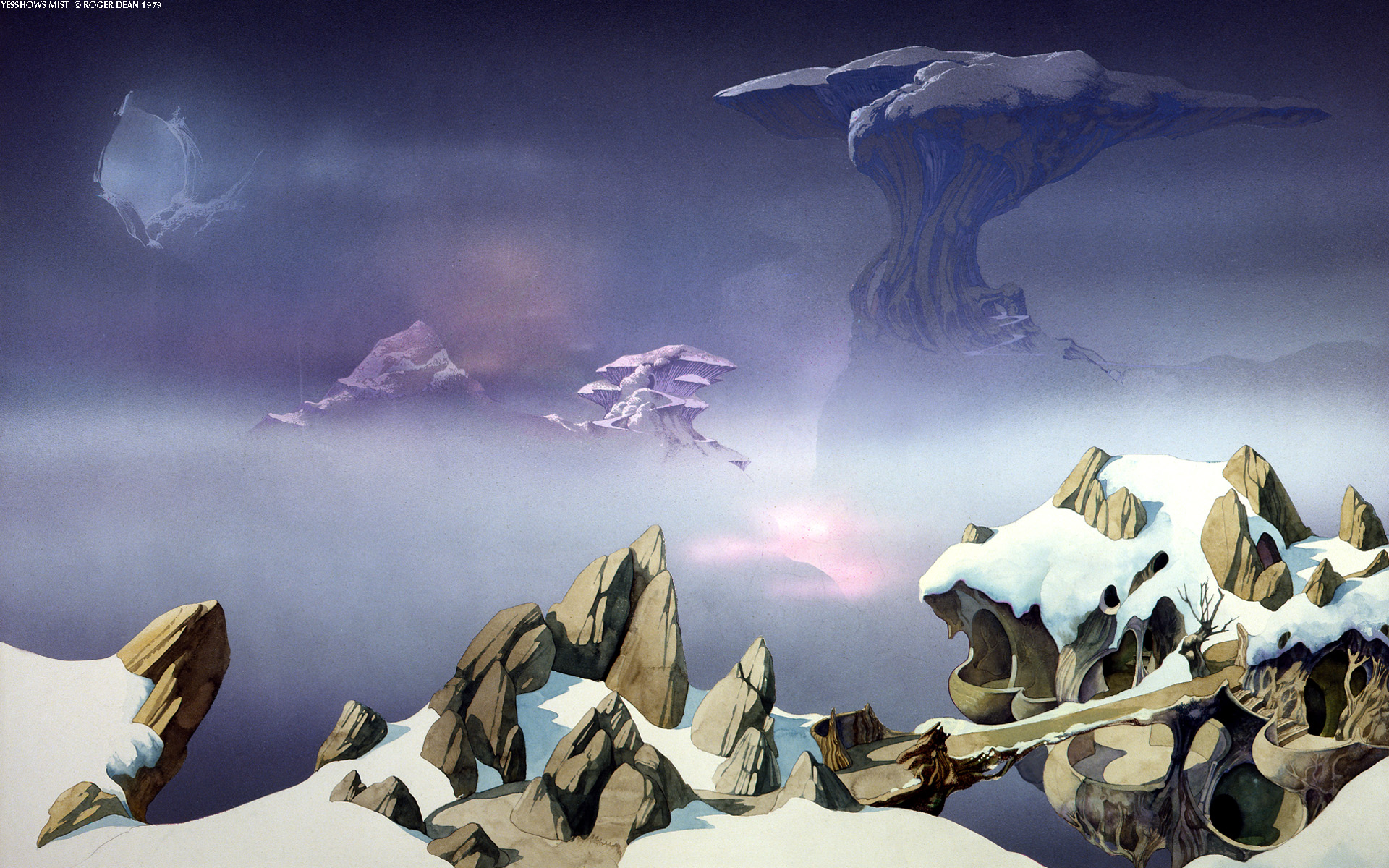Description: A painting of a mountain with a sky background and a star in the distance with a light shining on it.
