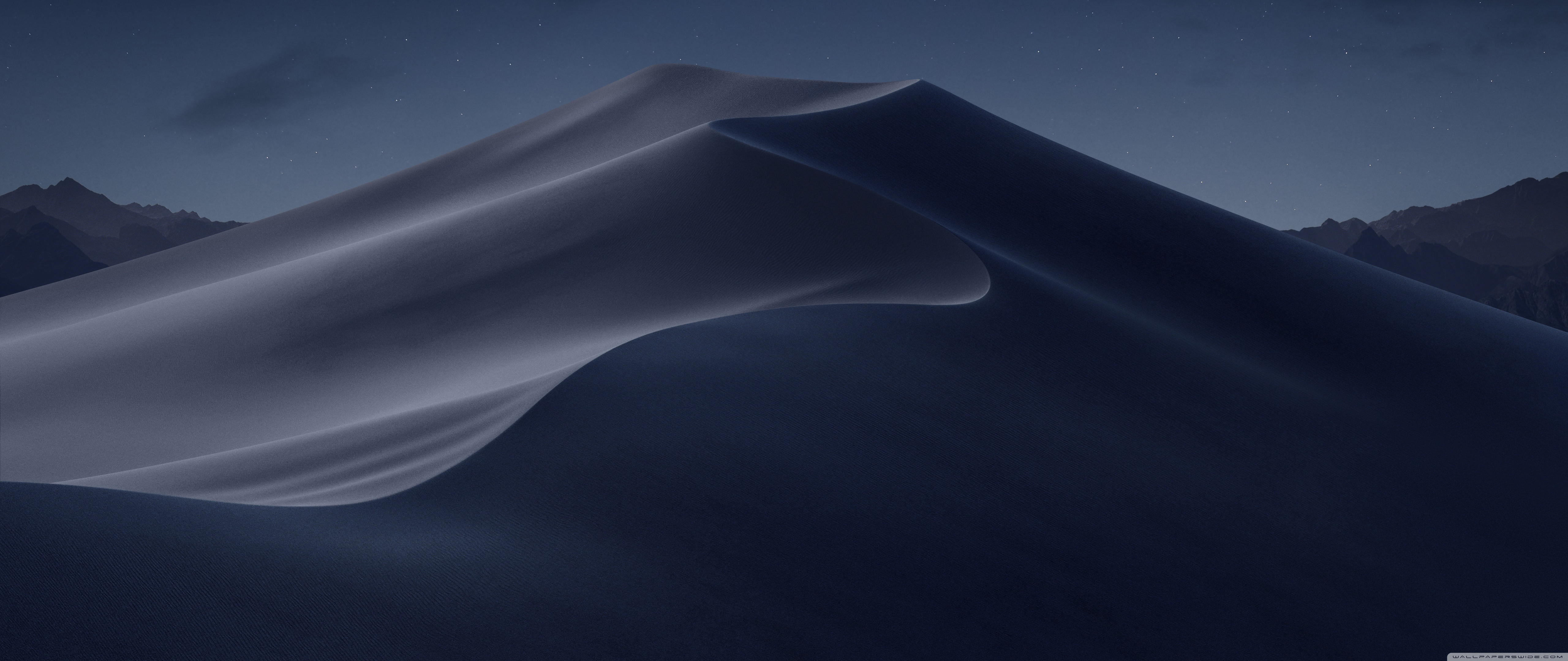 Description: A computer screen with a mountain in the background and a sky background with stars and clouds in the sky.
