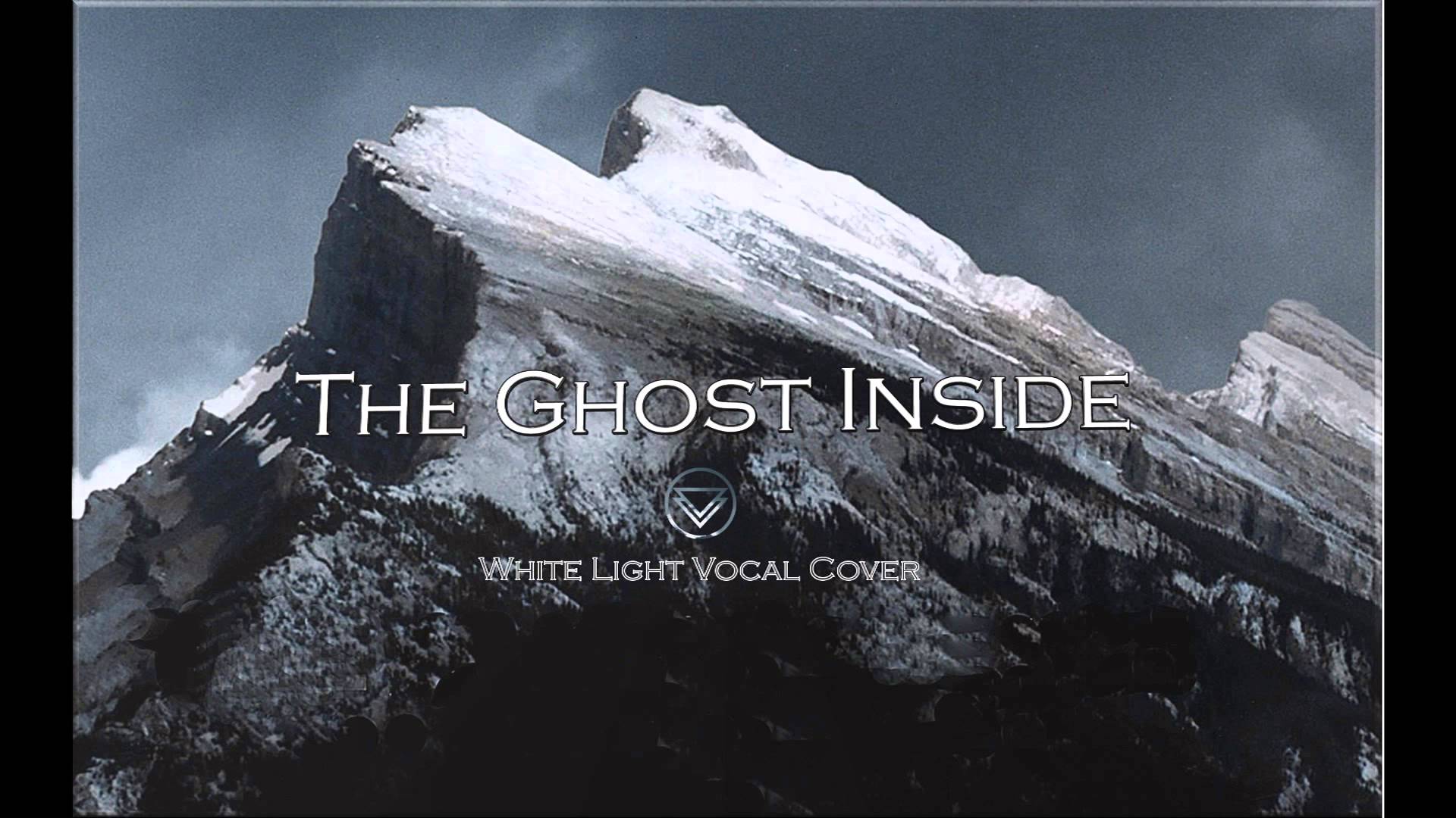 Description: A mountain with the words the ghost inside written on it's side and below it is a dark sky.