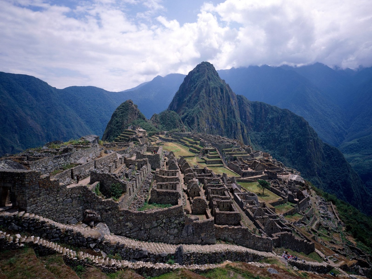 Description: A mountain with a very tall structure on top of it's side with a few buildings on it.