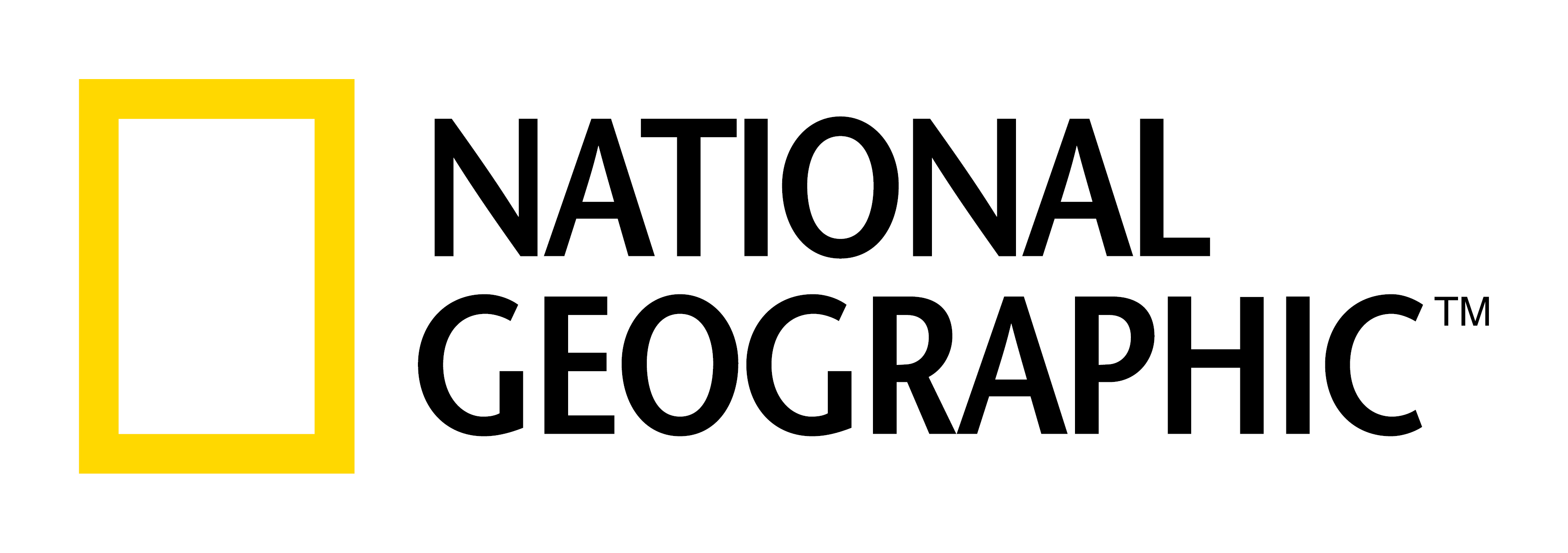 Description: The national geographic logo with a yellow rectangle on it's left side and a black and white rectangle on the right side.