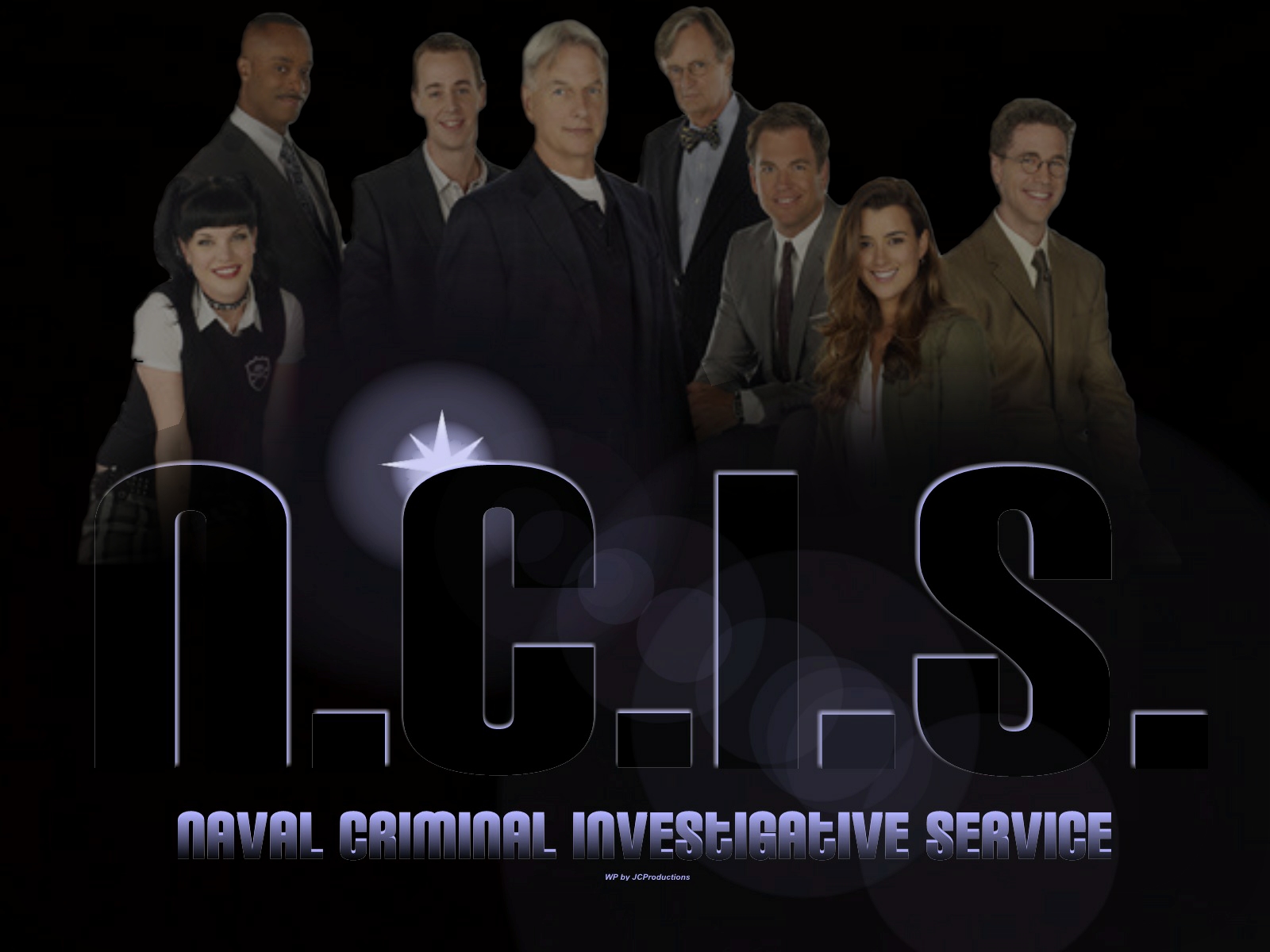 Description: A group of people standing in front of a black background with the words ncis above it and the words ncis above it.