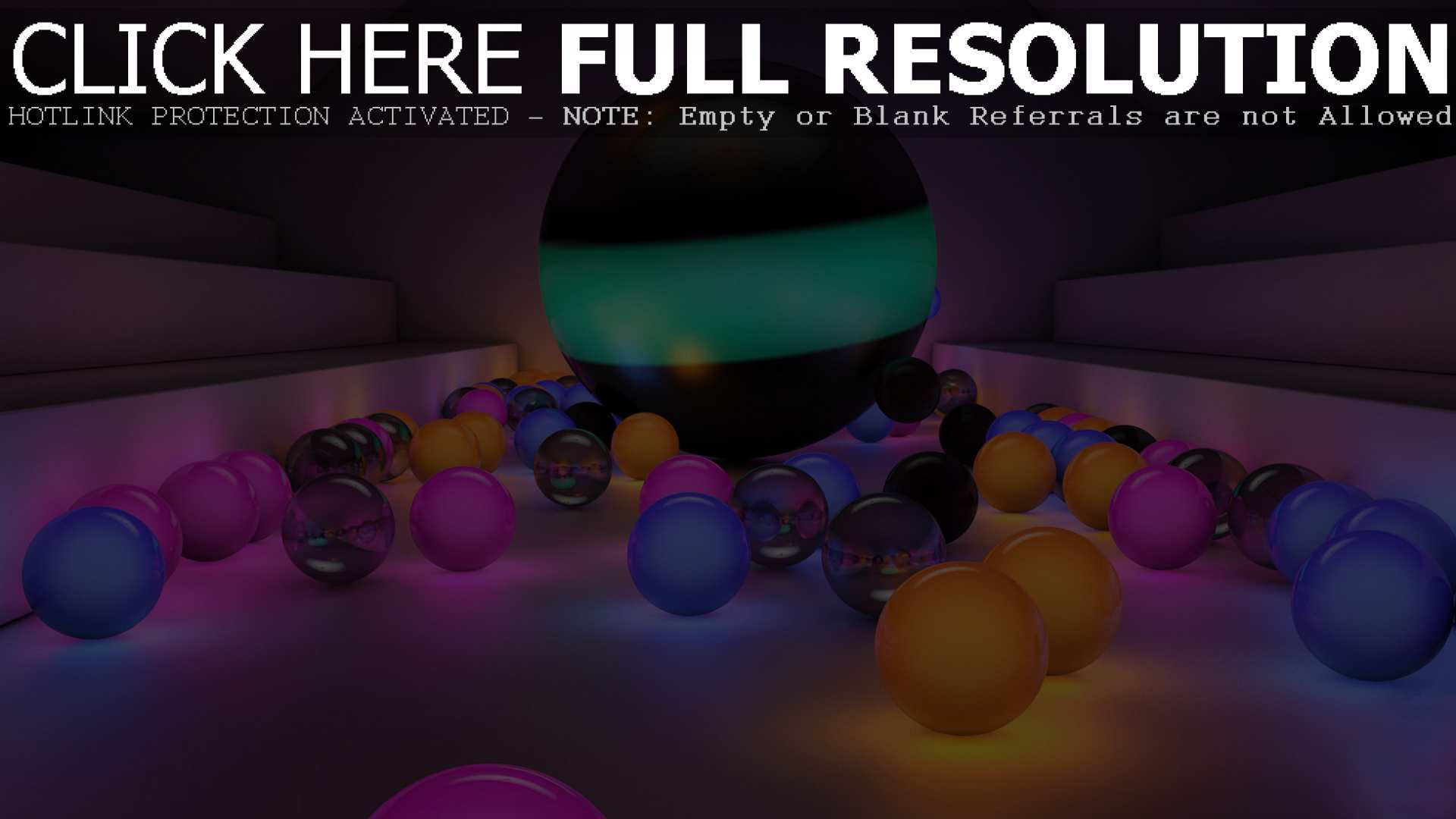 Description: A group of balls and a bowling ball in a room with a neon light and a black light text reads click here full resolution.