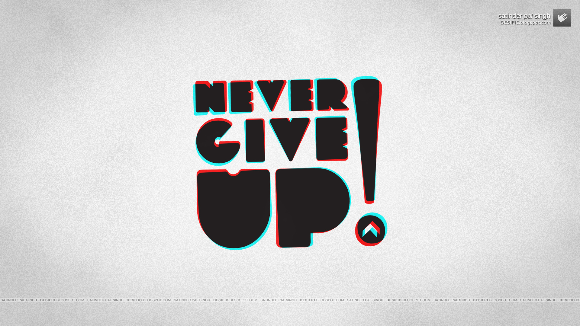 Description: A picture of a logo with the words never give up on it's side and a drop of blood in the middle.