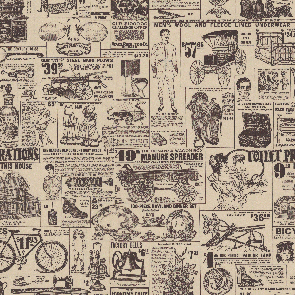 Description: A newspaper advertisement with a lot of different things on it's side and a man standing in front of a newspaper.