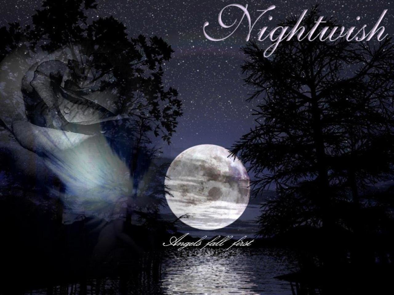 Description: A night scene with a full moon and a couple kissing in the moonlight with the words nightwih written across the picture.