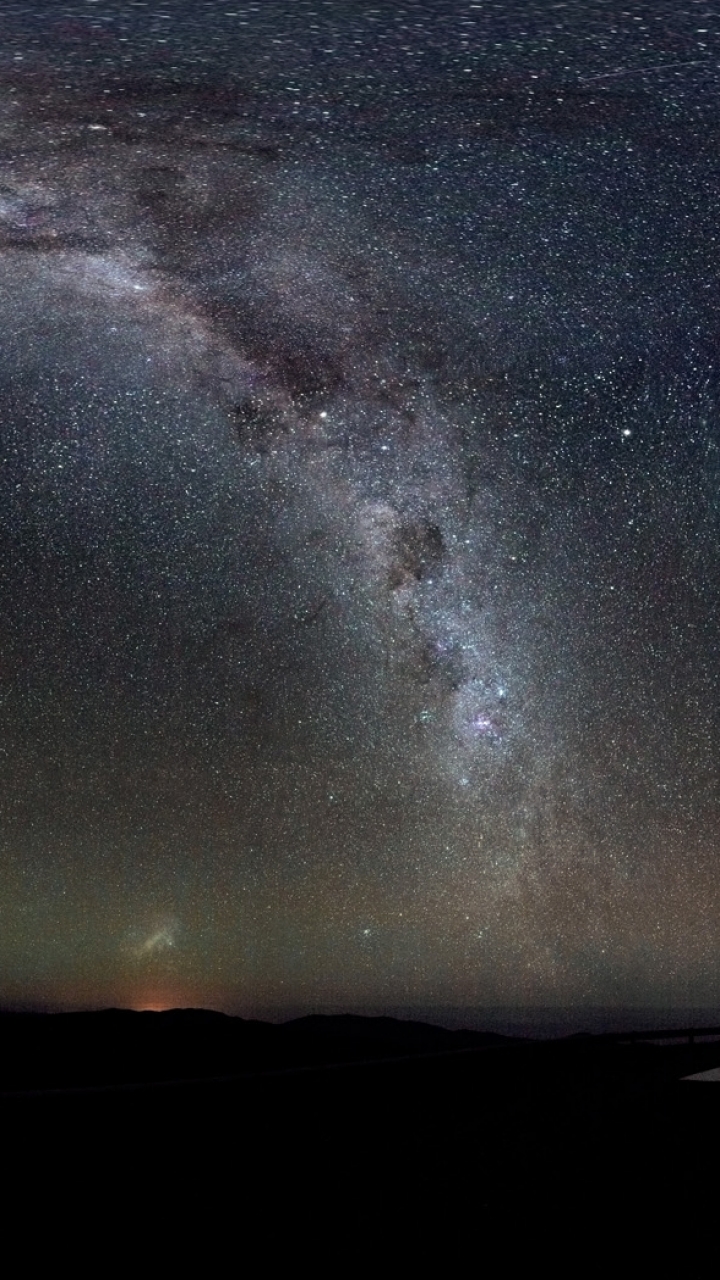 Description: A night sky with a lot of stars and a few clouds in it and a few people standing on the side of the road.