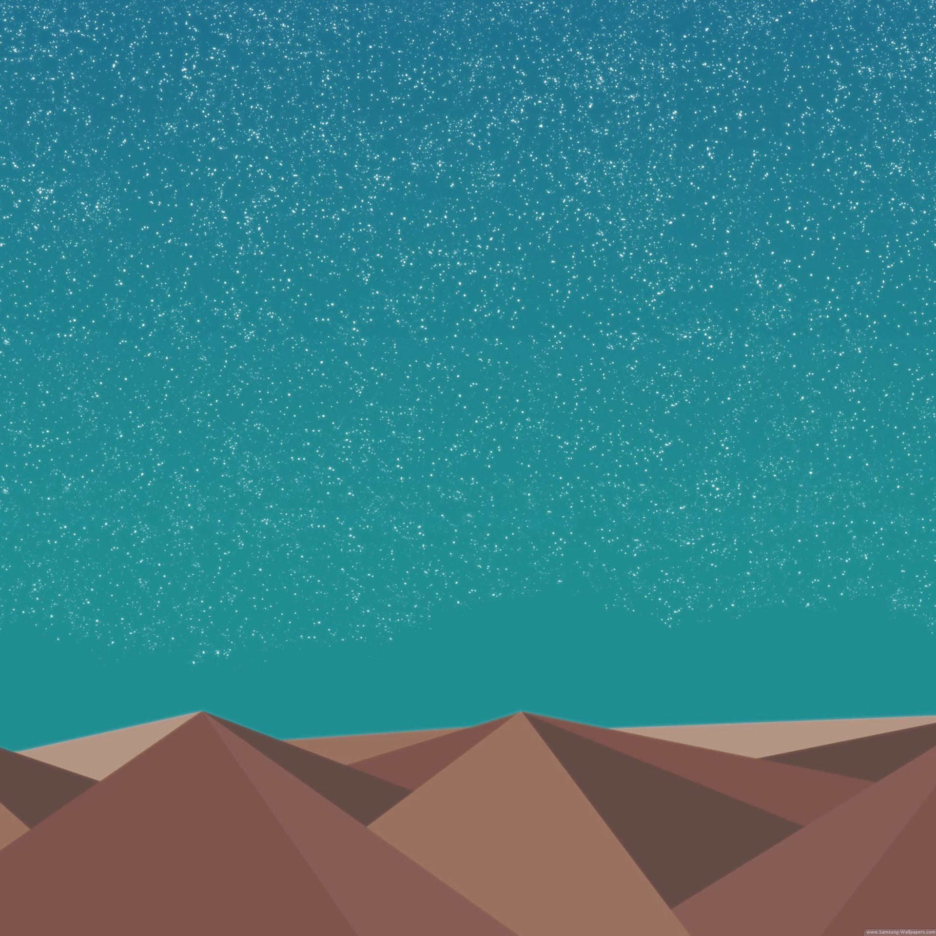 Description: A night sky with stars above a desert landscape with a blue sky and a few stars above it and a few hills.