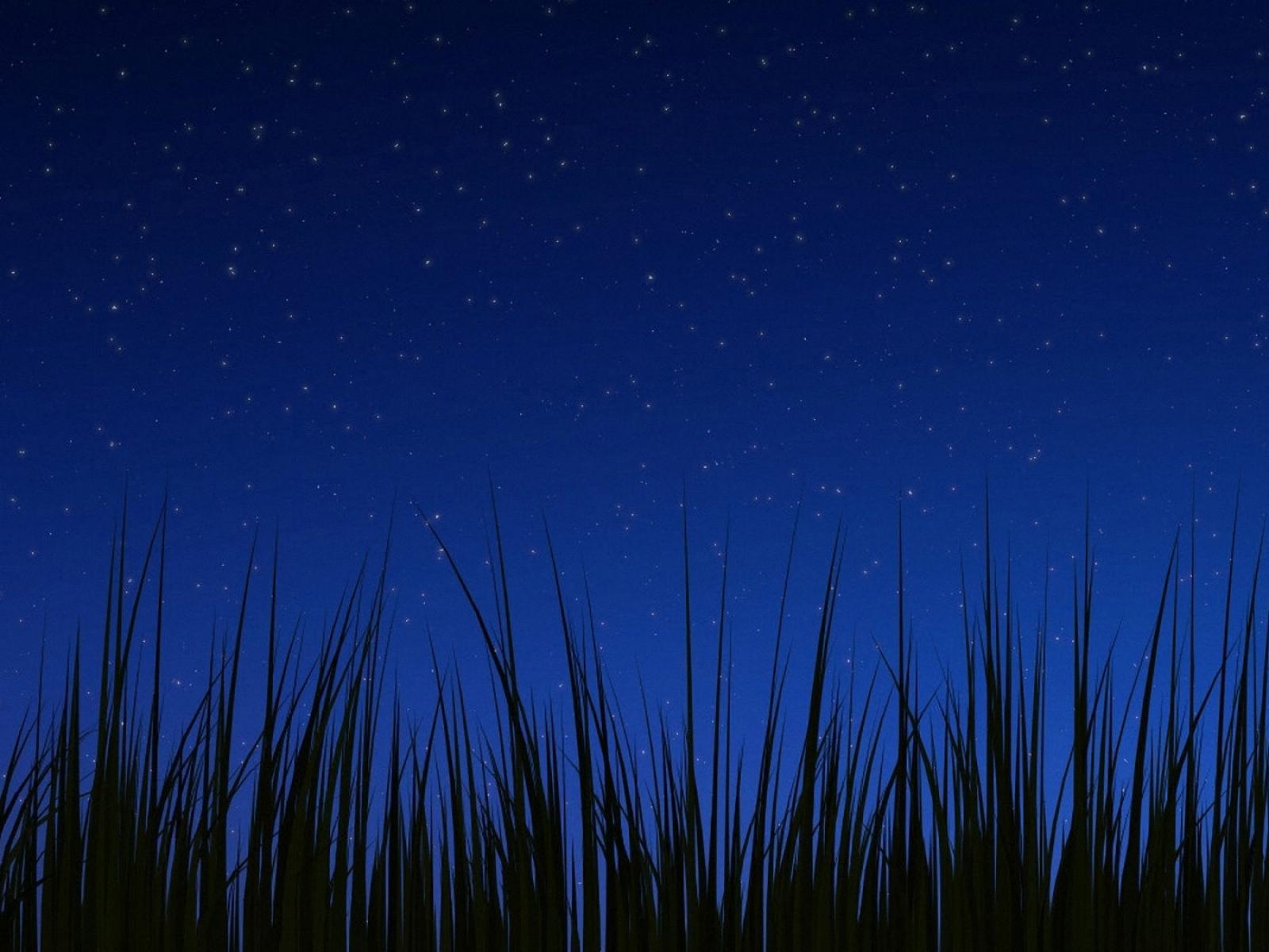Description: A night sky with stars and a field of grass with a blue sky in the background with stars in the sky.