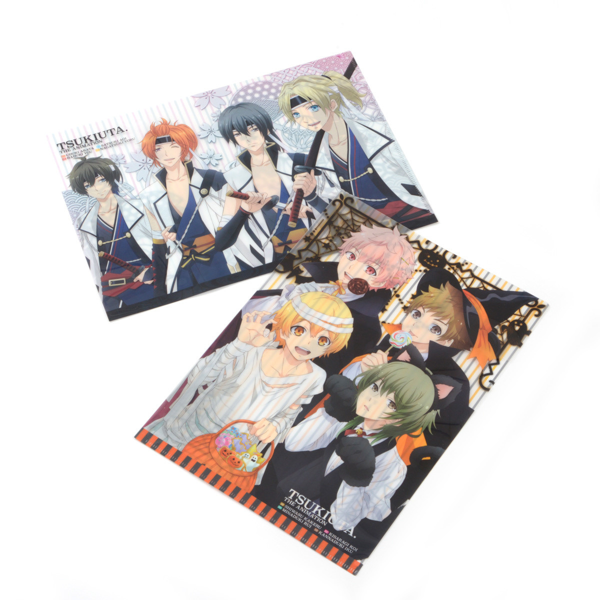 Description: A couple of notebooks with anime characters on them on a white surface with a white background and a black and white background.