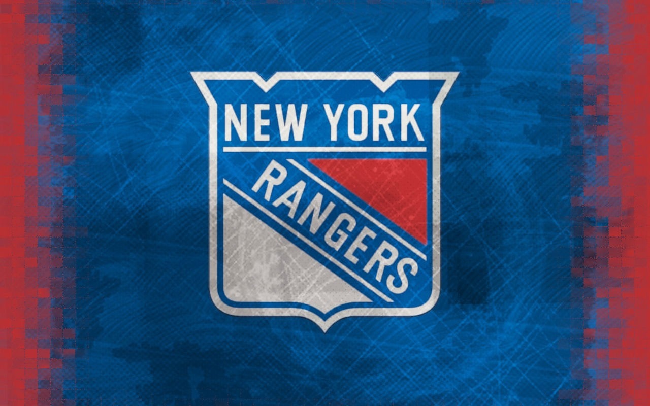 Description: A painting of a new york rangers logo on a blue and red background with a red border and a blue and white border.