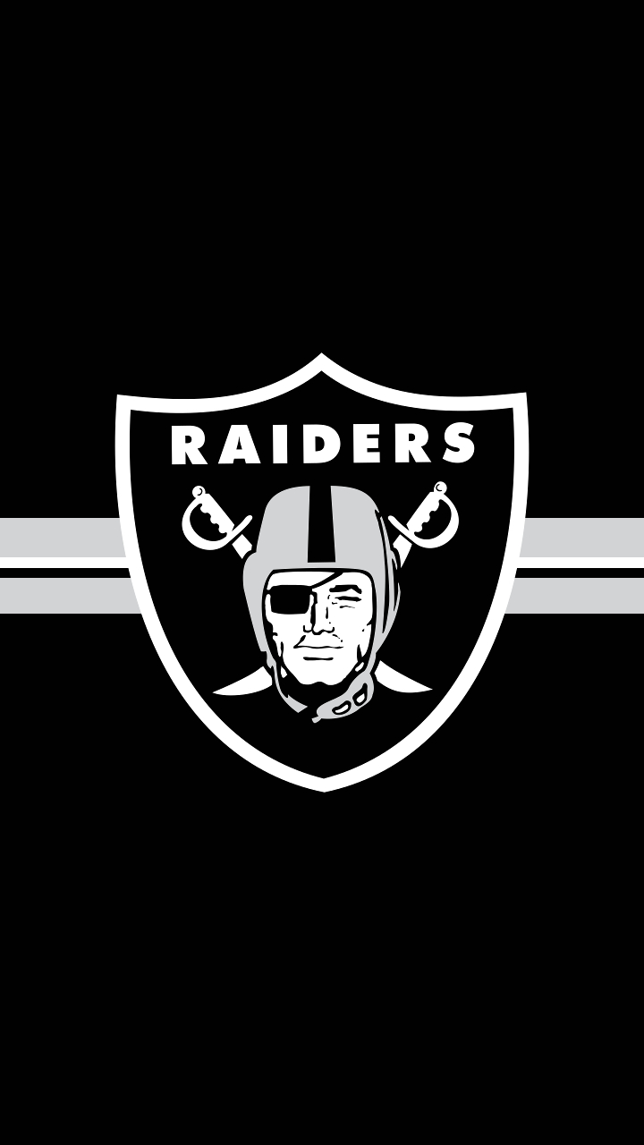 Description: A oakland football logo on a black background with a white stripe and a black helmet with a football on it.