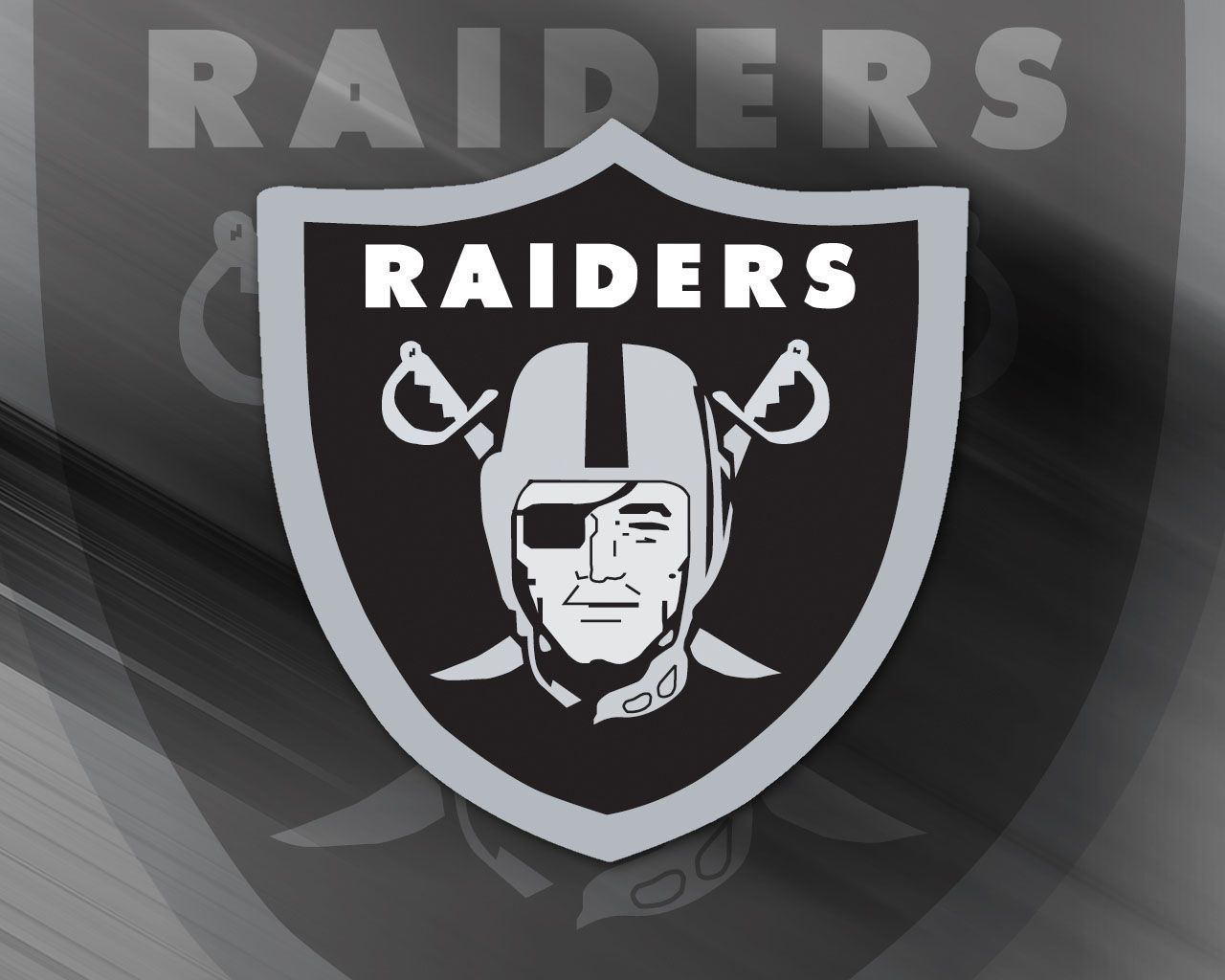 Description: A oakland football logo on a black and white background with the oakland logo in the center of the image.