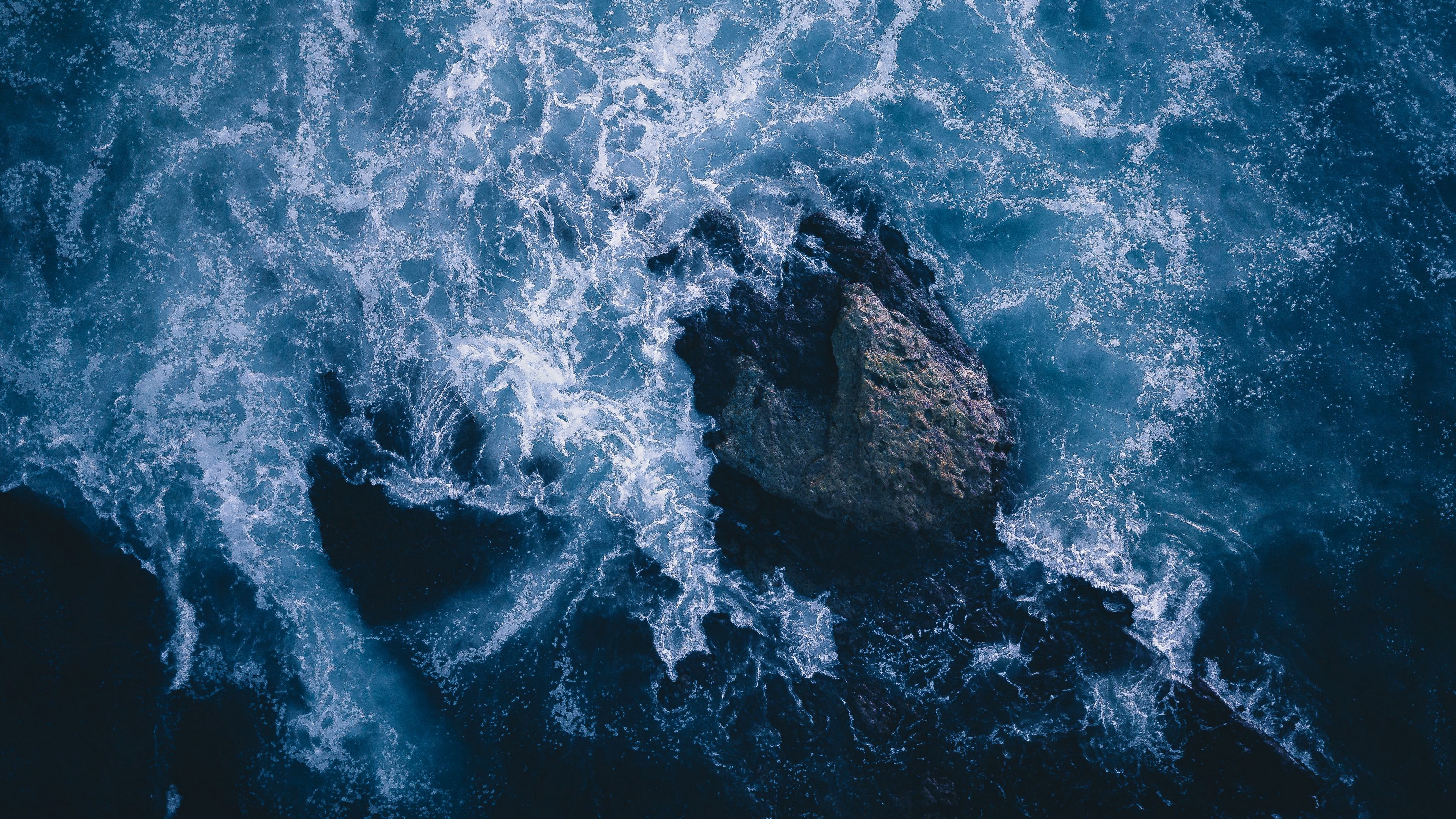 Description: A rock in the middle of the ocean with waves coming in on it and a rock in the middle of the ocean.
