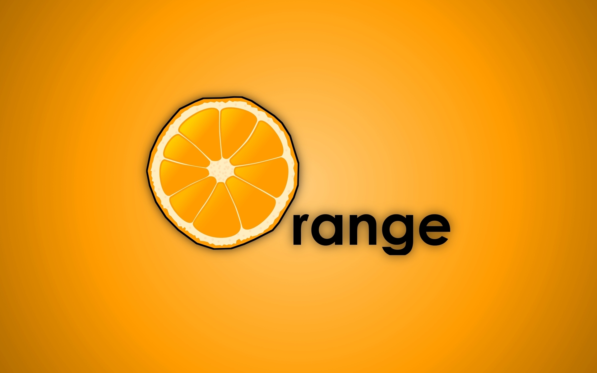 Description: A logo for a company with a orange cut in half and the word range written in black on a yellow background.